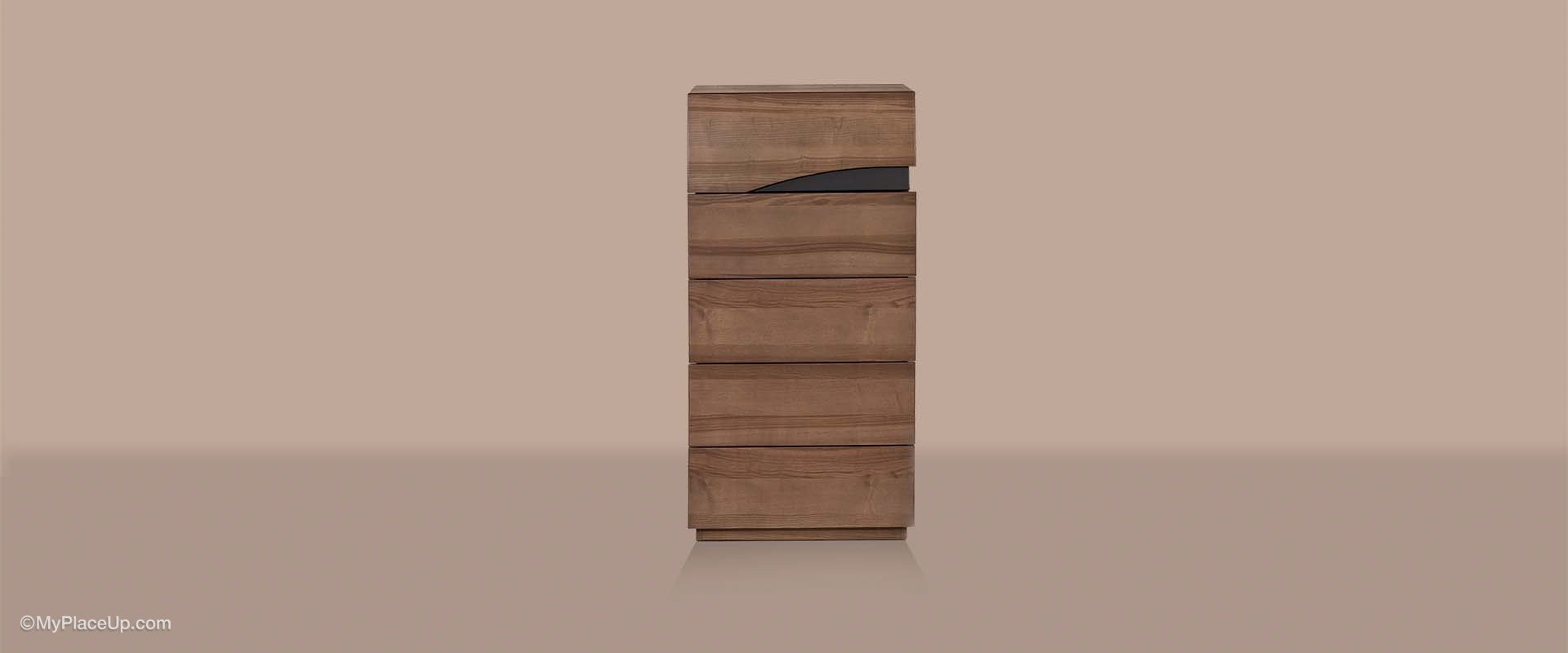 Πιστοποιημένος ΠρομηθευτήςΚύριο χαρακτηριστικό της συρταριέρας αποτελούν για ακόμη μια φορά οι καμπύλες που αντιπροσωπεύουν τη πολυτελή εμφάνιση της Σάρας Ελιάς. Το ιδιαίτερο υφασμάτινο πόμολο και η απαλή απόχρωση ξύλου που ντύνει τη συρταριέρα αναδεικνύει τη μοναδικότητα της και δίνουν έμφαση στη λεπτομέρεια.