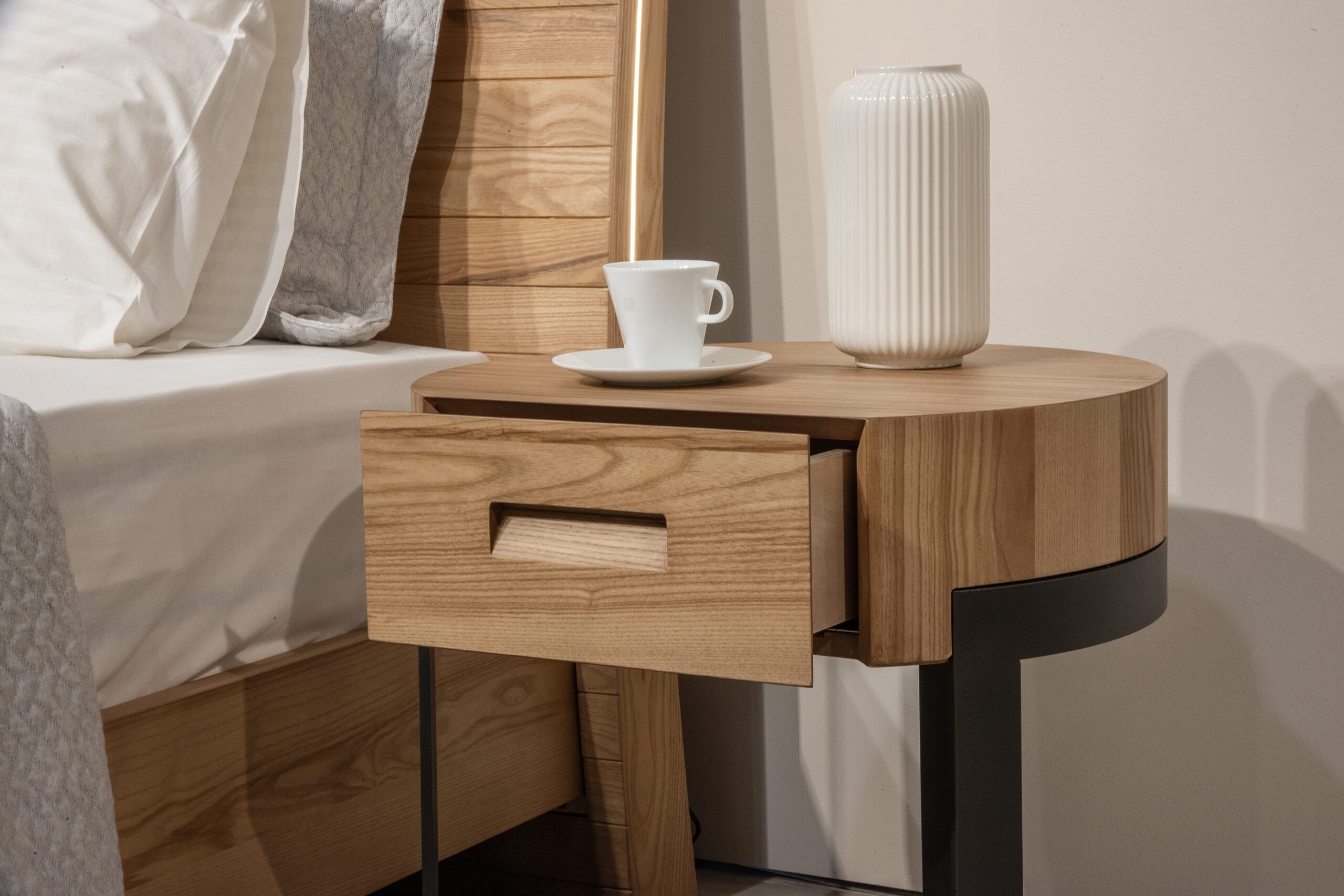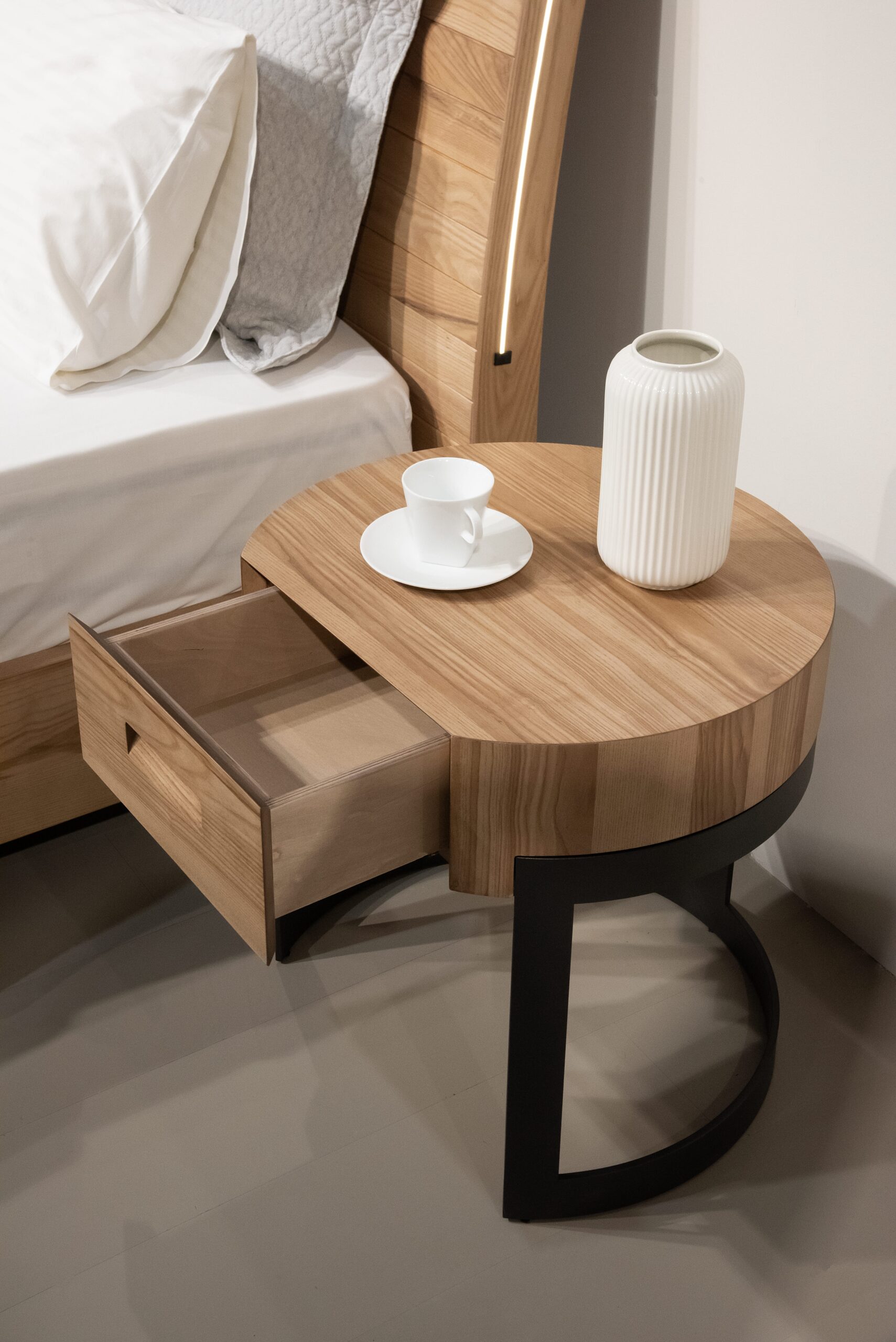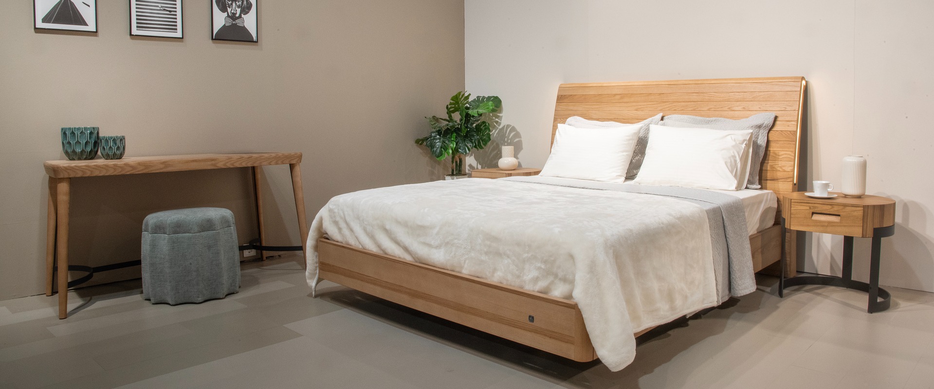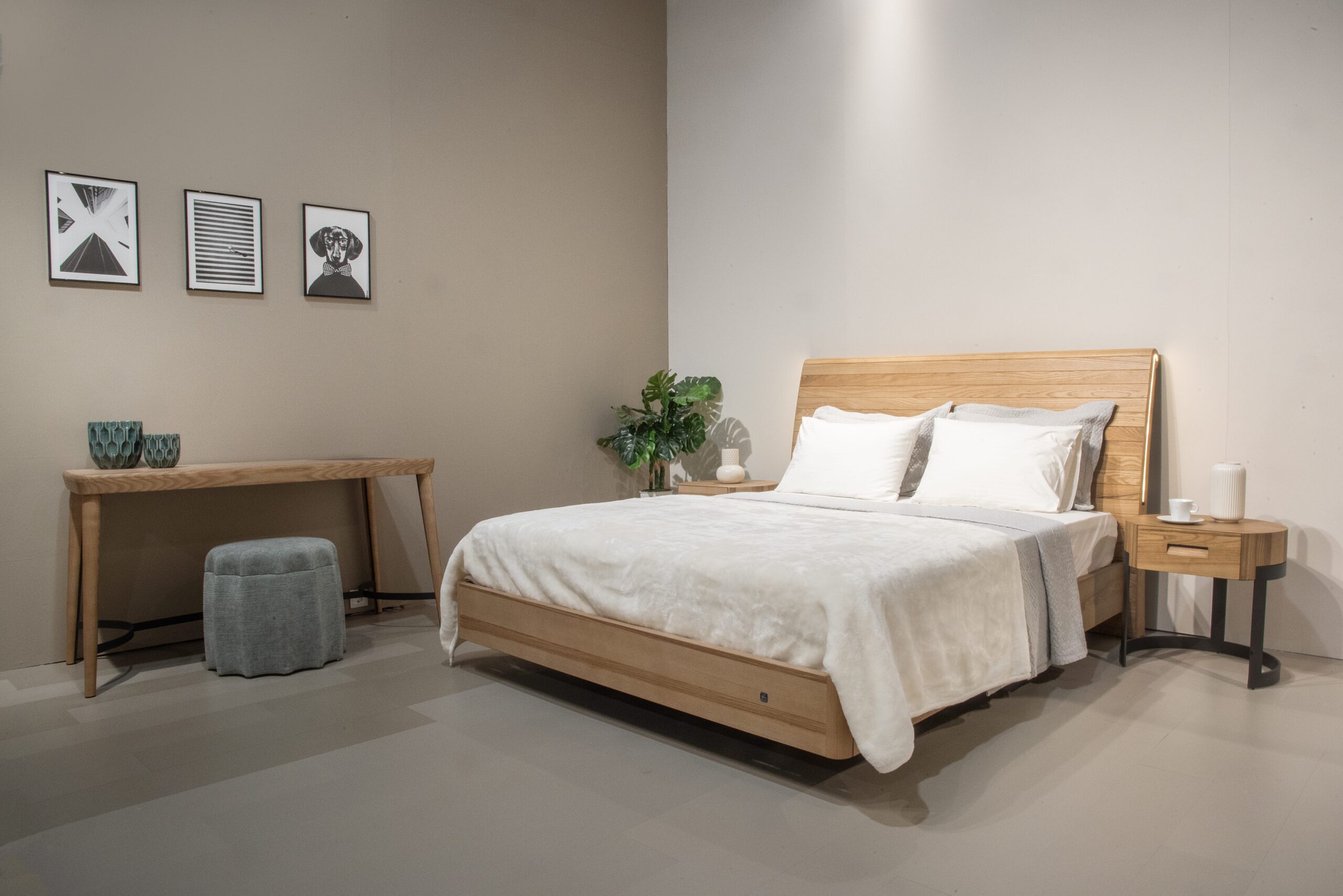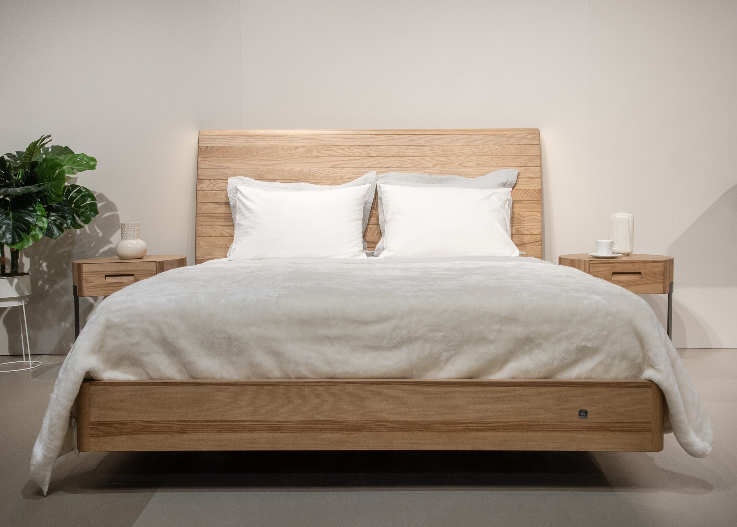 Το κρεβάτι και τα δύο κομοδίνα.