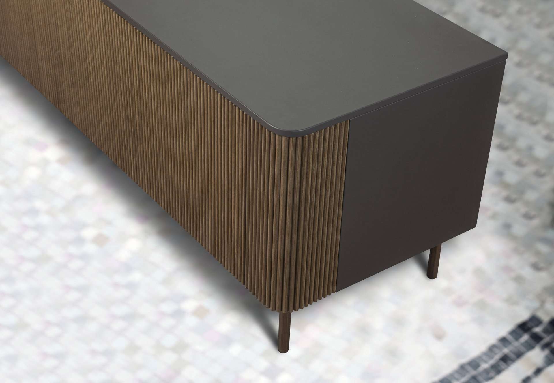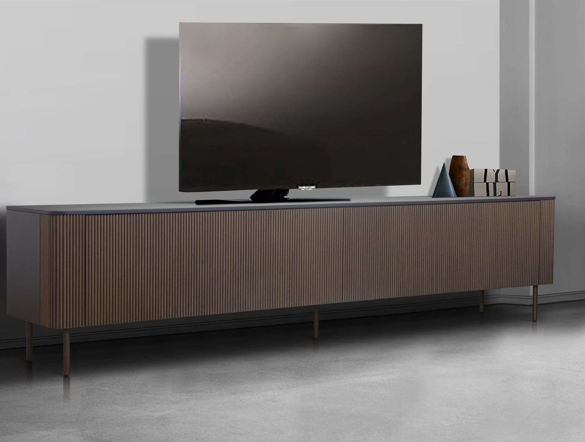 Έπιπλο TV Goliath με ξύλο δρυς και επιφάνεια σε λάκα με επιλογή χρώματος. Η νέα τάση της μόδας με έυκαμπτο μασίφ δρυ, ήρθε να αλλάξει τα δεδομένα. Κατασκευάζεται με φυσικά υλικά σε χρώματα και διαστάσεις της επιλογής σας.