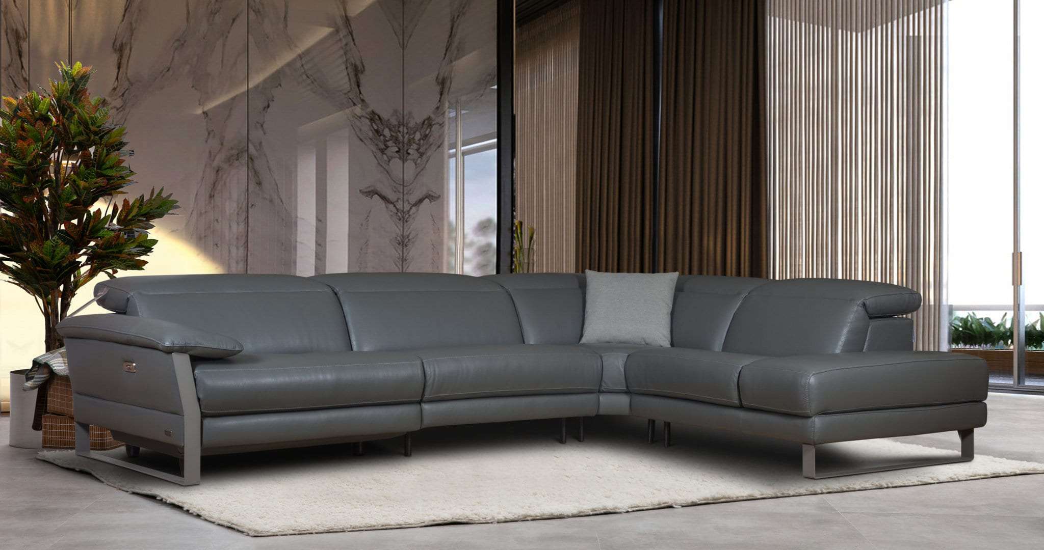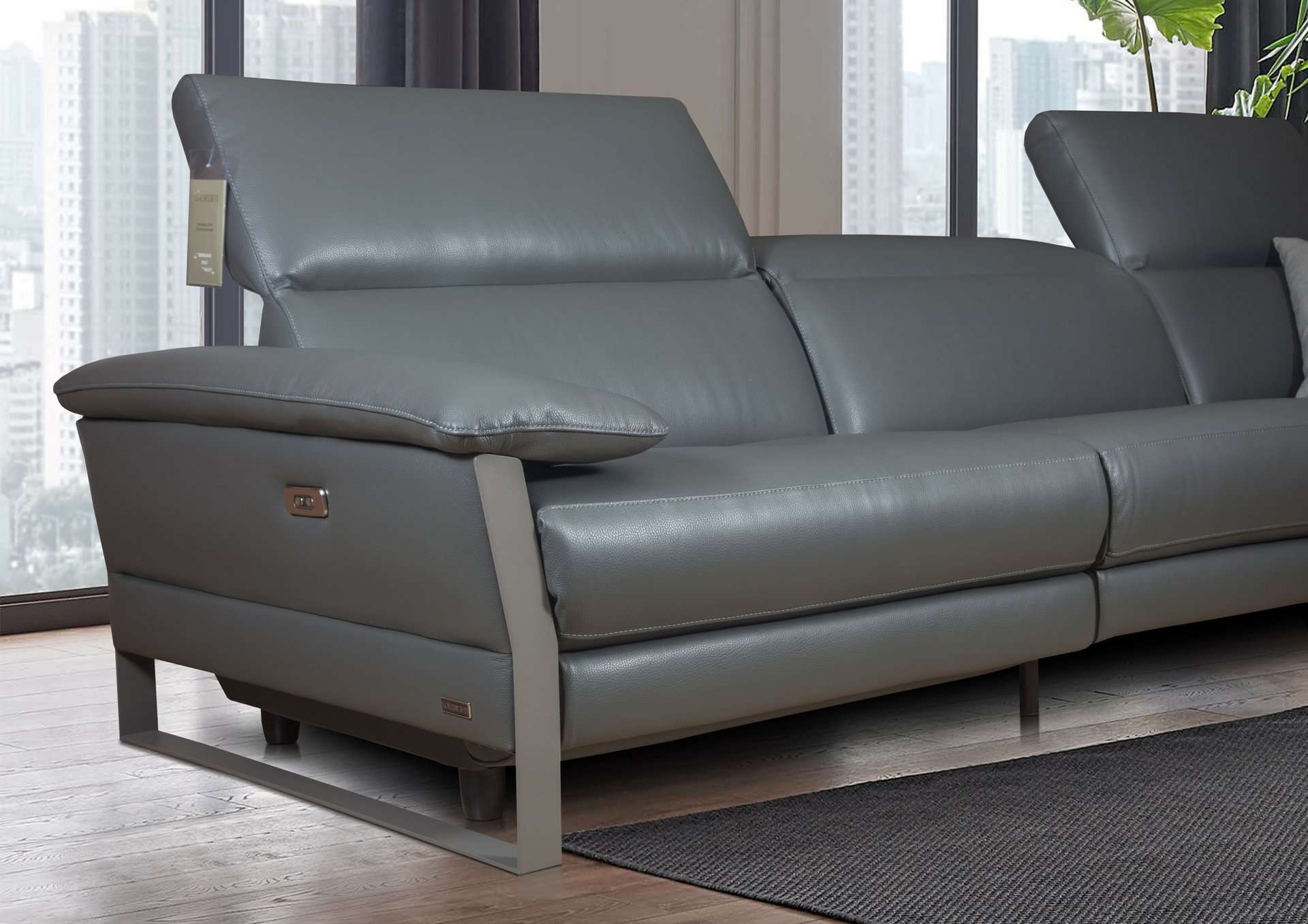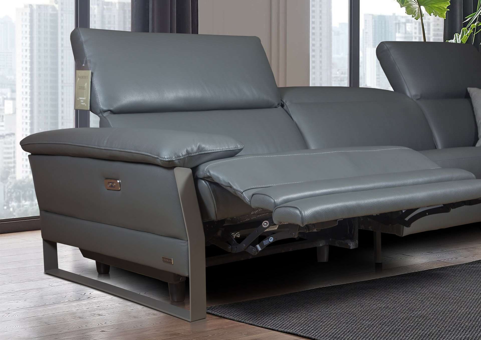 Ιταλικός καναπές Skyline γωνιακός. Κατασκευάζεται στην Ιταλία με γνήσιο δέρμα 100% με χρώματα και ποιότητες της επιλογής σας, ή μπορεί να κατασκευαστεί με ύφασμα σε ποιότητα και χρώμα που θα επιλέξετε. Δυνατότητα ηλεκτρικού μηχανισμού relax