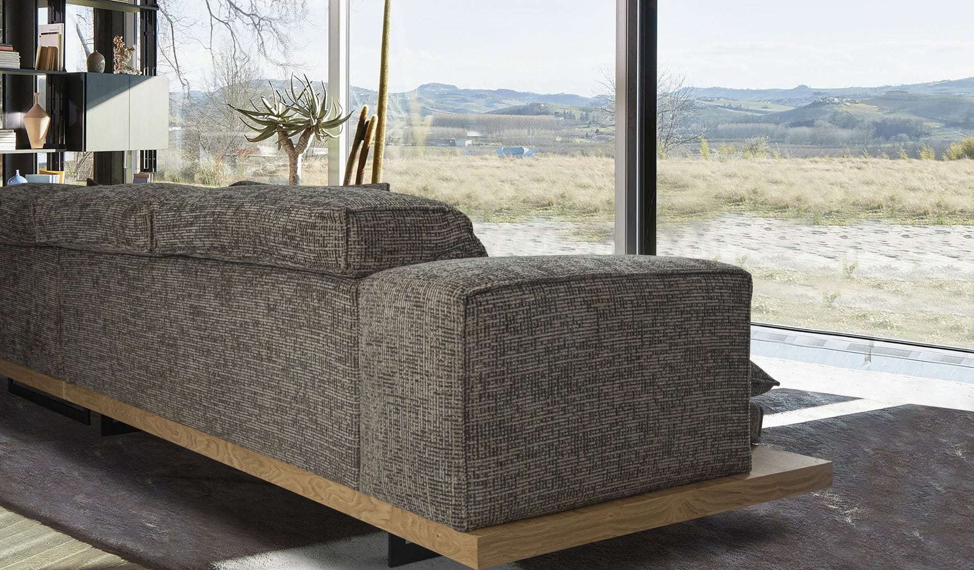 Σύγχρονος καναπές με ανάκληση στο προσκέφαλο ,ξύλινη βάση και ντυμένος με εξαιρετικής ποιότητας ύφασμα.