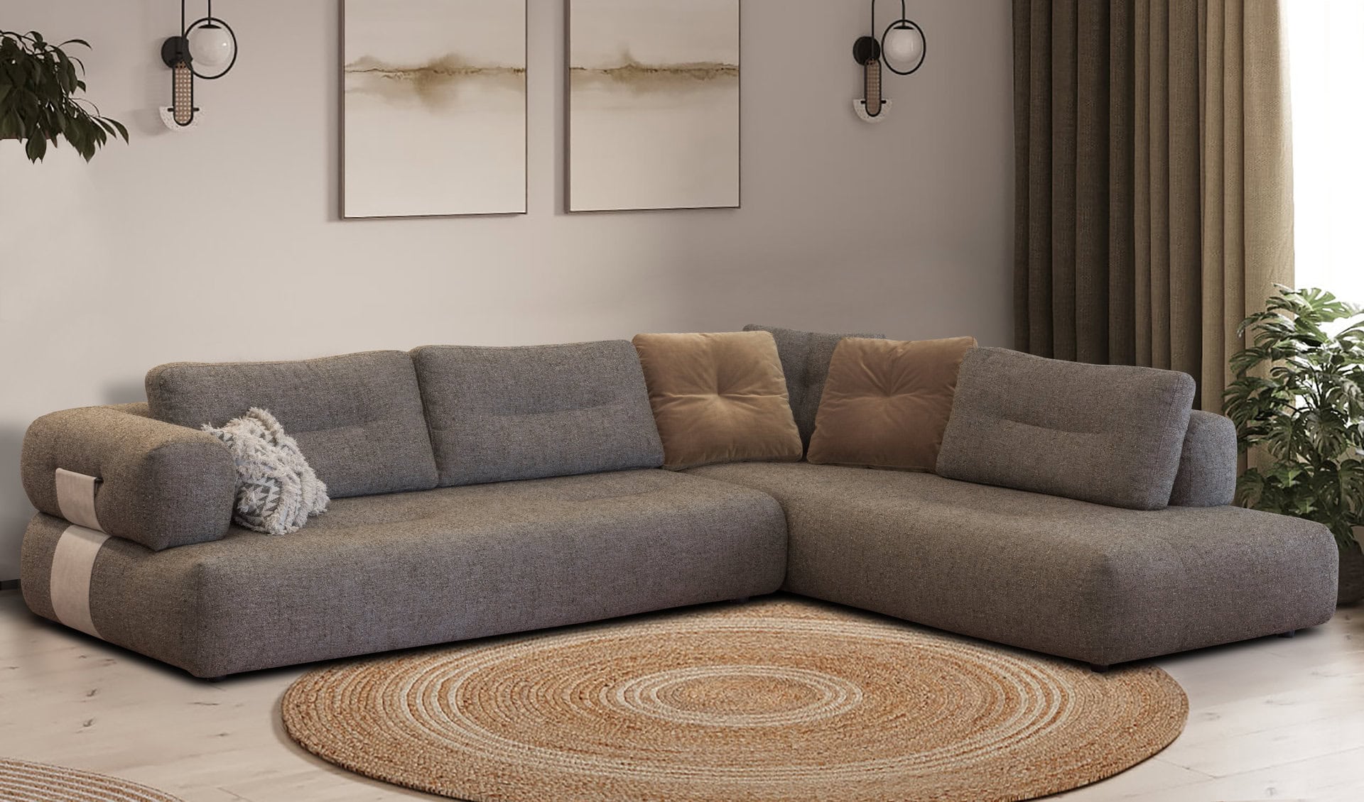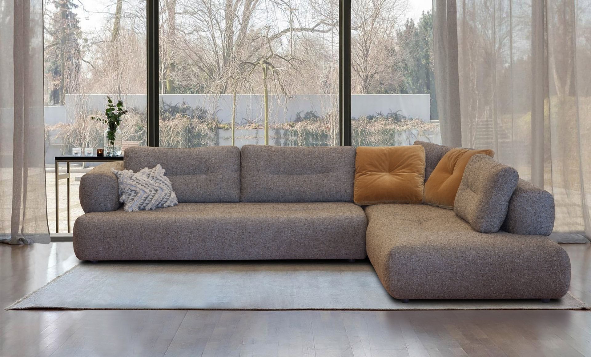 Γωνιακός καναπές Brera Ελληνικής κατασκευής. Διάσταση: 330cm x 250cm x 115cm Τα μαξιλάρια καθίσματος κατασκευάζονται από αφρό πολυουρεθάνης μέτριας προς μαλακής σκληρότητας ενώ τα μαξιλάρια πλάτης είναι γεμισμένα με πολυεστερικές ίνες (conforel). Ο σκελετός του καναπέ είναι κατασκευασμένος από μασίφ ξυλεία (οξιά & λευκή ξυλεία) ενώ τη στήριξη των μαξιλαριών αναλαμβάνουν οι πυκνά τοποθετημένοι & πλεγμένοι ελαστικοί ιμάντες (φάσες). Με μηχανισμό στην πλάτη που μας δίνει επιπλέον βάθος στο κάθισμα του καναπέ Διατίθεται σε διάφορες διαστάσεις, με ύφασμα & απόχρωση υφάσματος της επιλογής σας. Κατηγορία υφάσματος: αδιάβροχο - easy clean Δυνατότητα αλλαγών.
