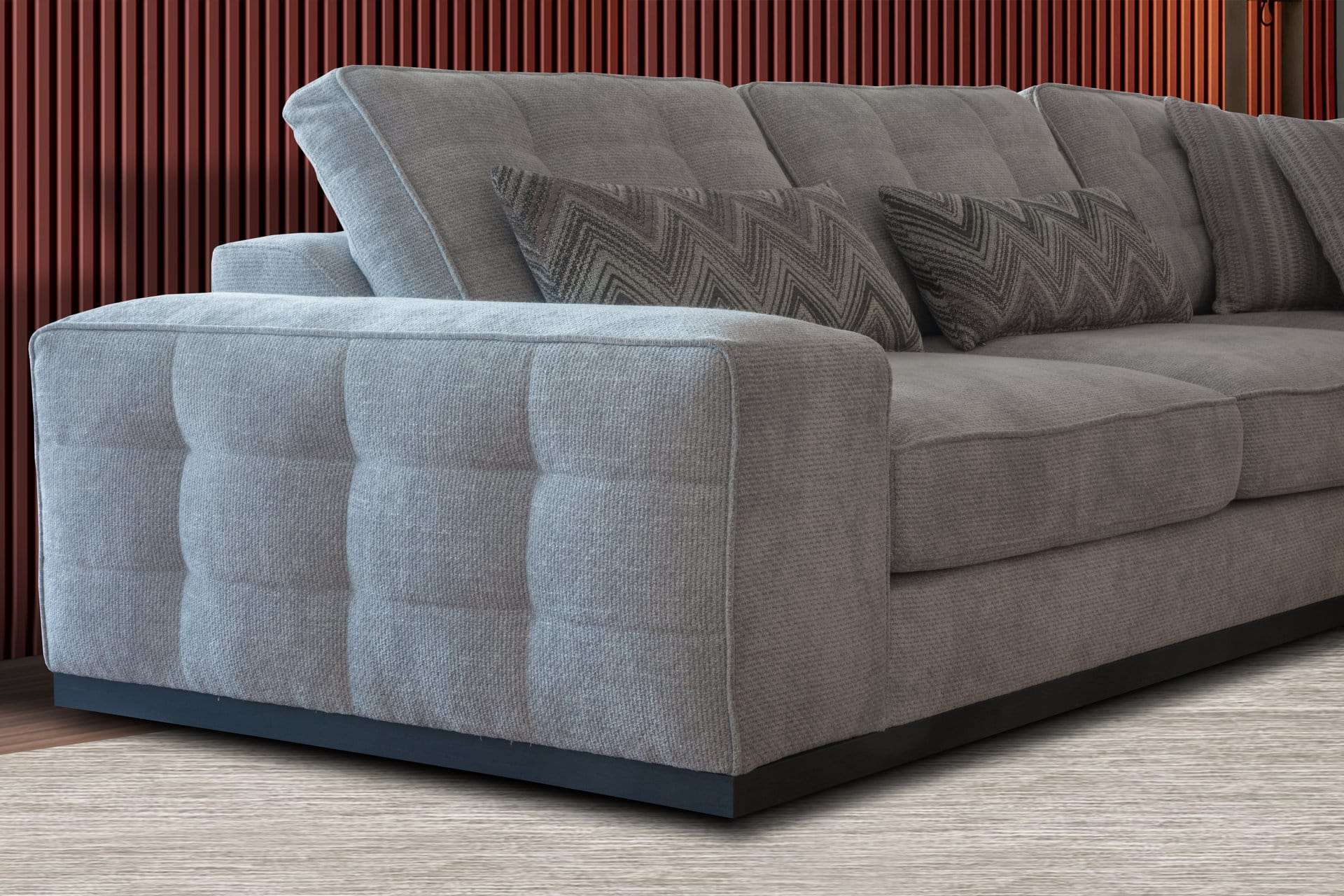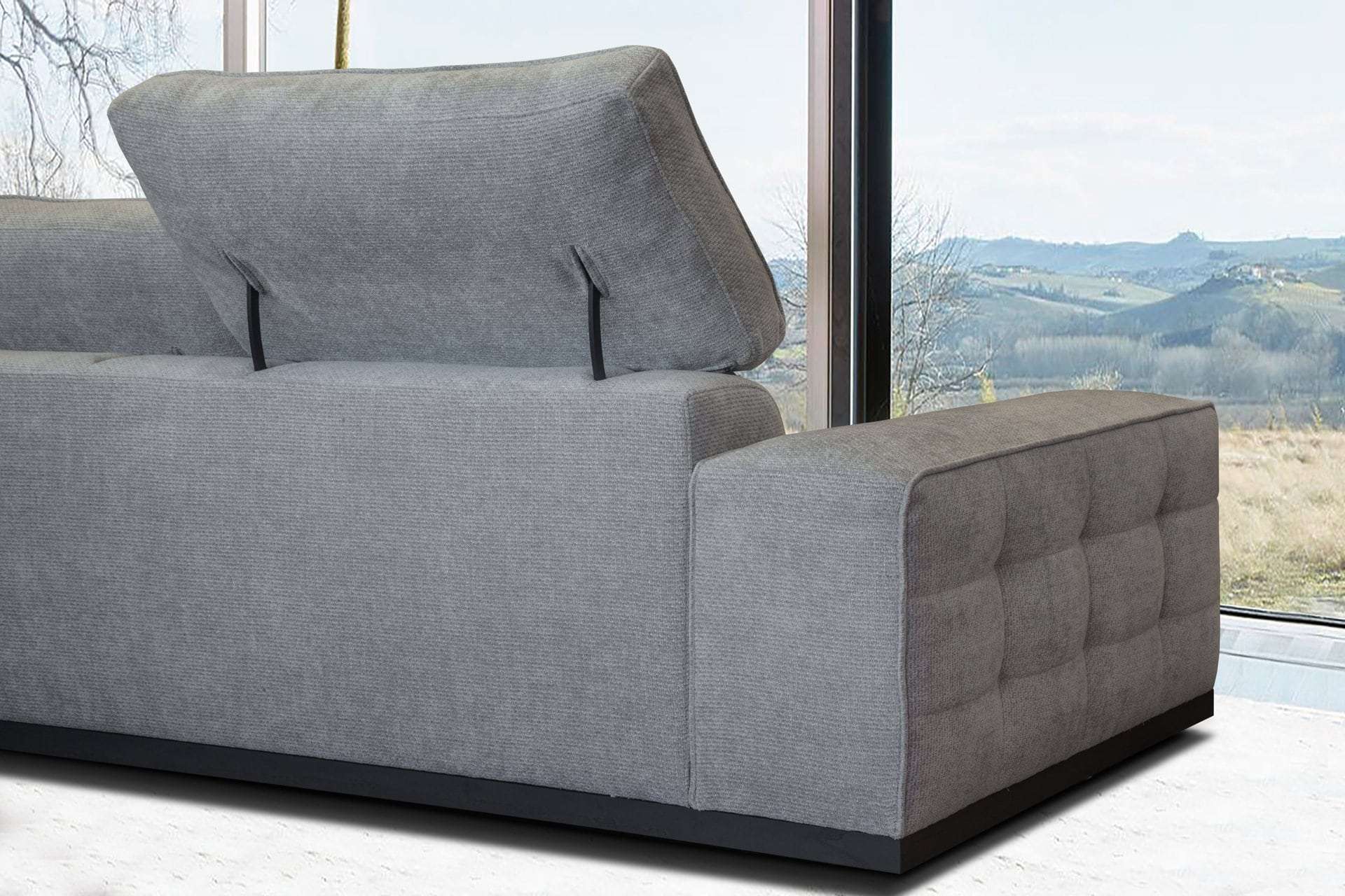 Γωνιακός καναπές 2 τεμαχίων, με λάστιχο υψηλής ποιότητας στο κάθισμα, ξύλινη επένδυση στην μπάζα, μηχανισμό στην πλάτη που ανοιχτός μας δίνει μεγαλύτερο βάθος και μας κρατάει στο κεφάλι. Διατίθεται σε διάφορες διαστάσεις, με ύφασμα & απόχρωση υφάσματος της επιλογής σας όπως και αποχρώσεις ξύλου.