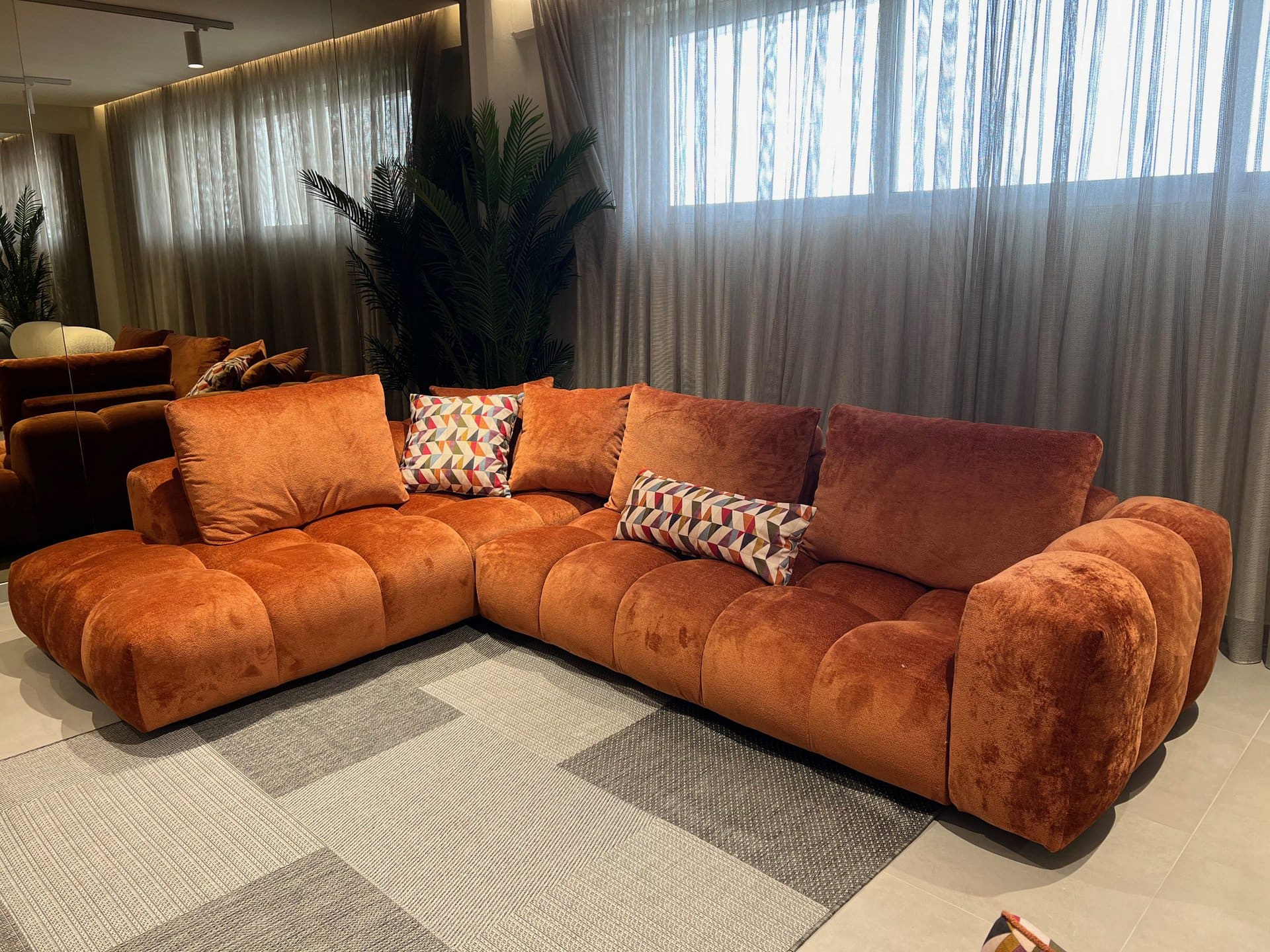 Γωνιακός καναπές 2 τεμαχίων, με λάστιχο υψηλής ποιότητας στο κάθισμα. Mοναδικής σχεδίασης όλος κουρμπαριστός. Διατίθεται σε διάφορες διαστάσεις, με ύφασμα & απόχρωση υφάσματος της επιλογής σας όπως και αποχρώσεις ξύλου.