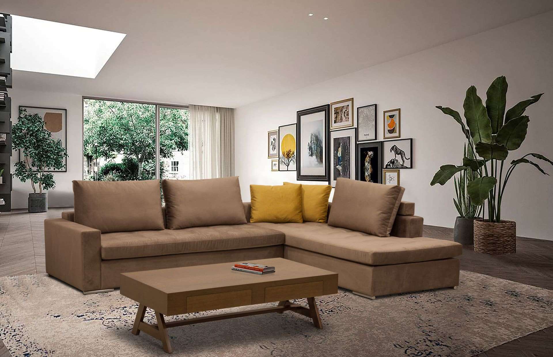 Γωνιακός καναπές 2 τεμαχίων, με λάστιχο υψηλής ποιότητας στο κάθισμα. Διατίθεται σε διάφορες διαστάσεις, με ύφασμα & απόχρωση υφάσματος της επιλογής σας.