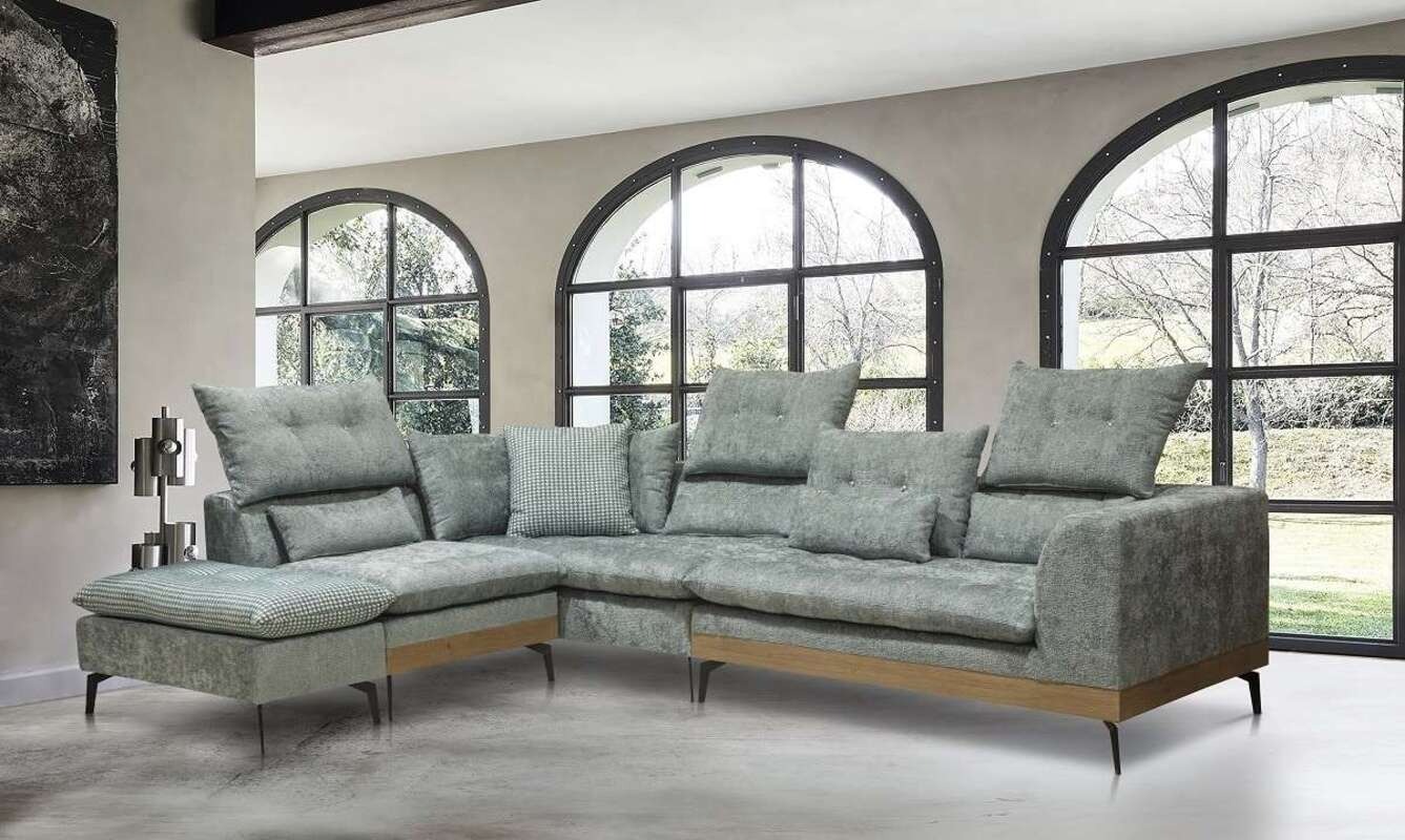 Γωνιακός καναπές 2 τεμαχίων, με λάστιχο υψηλής ποιότητας στο κάθισμα, ξύλινη επένδυση στην μπάζα, ψηλά μεταλλικά πόδια και μηχανισμό στο προσκέφαλο. Διατίθεται σε διάφορες διαστάσεις, με ύφασμα & απόχρωση υφάσματος της επιλογής σας όπως και αποχρώσεις ξύλου.