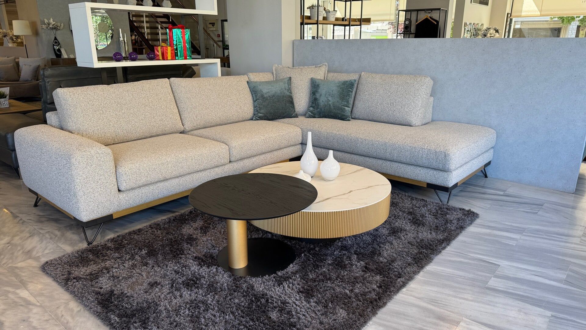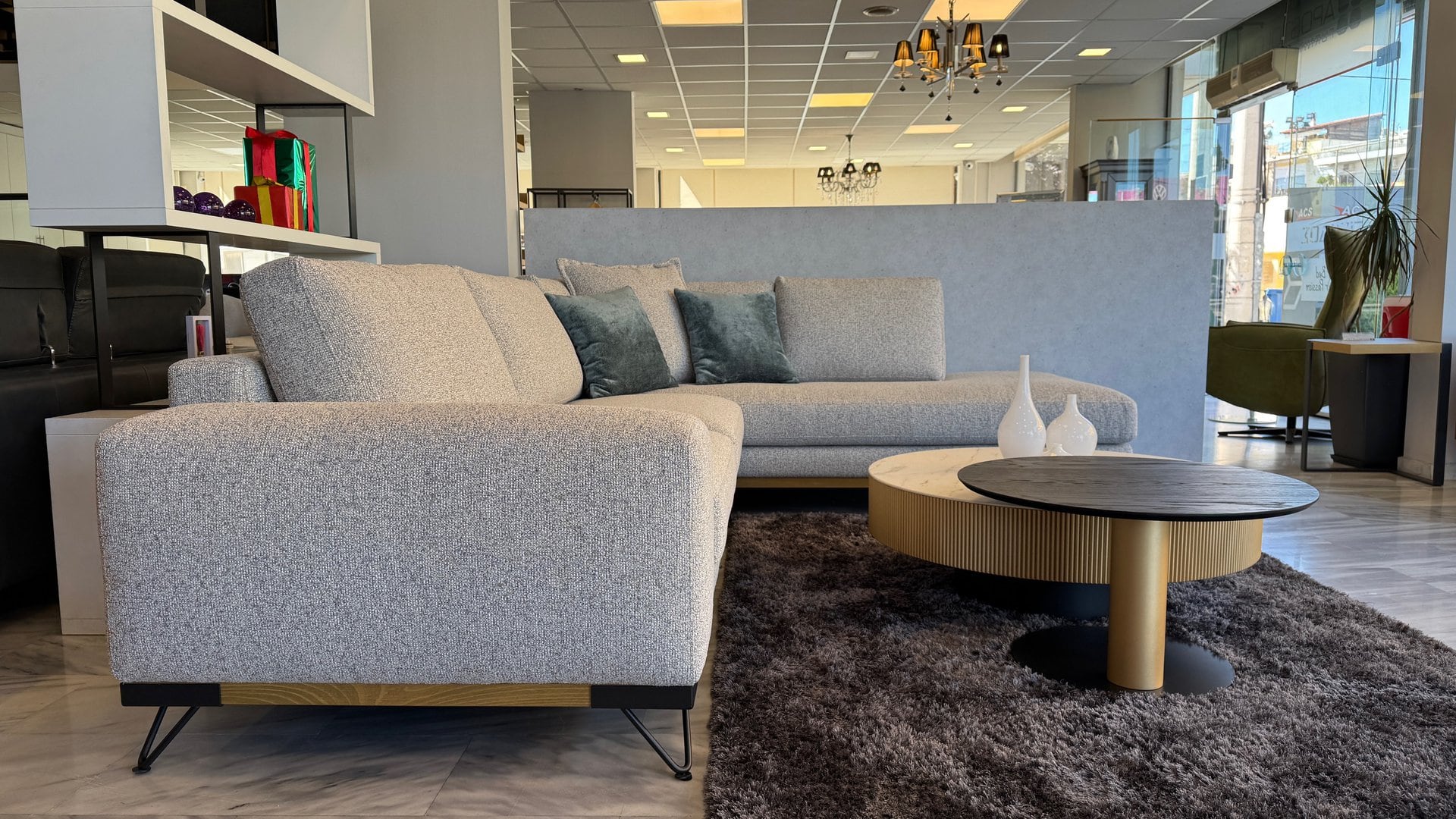 Γωνιακός καναπές 2 τεμαχίων με μαξιλάρια καθίσματος υψηλής ποιότητας δυο διαφορετικών πυκνοτήτων για αναπαυτικό κάθισμα. Διαθέτει ξύλινη μπάζα και έντονο μαξιλάρι καθίσματος και προσφέρει καλαισθησία και μοναδικότητα στον χώρο σας. Διατίθεται σε διάφορες διαστάσεις, με ύφασμα & απόχρωση υφάσματος της επιλογής σας όπως και αποχρώσεις ξύλου.