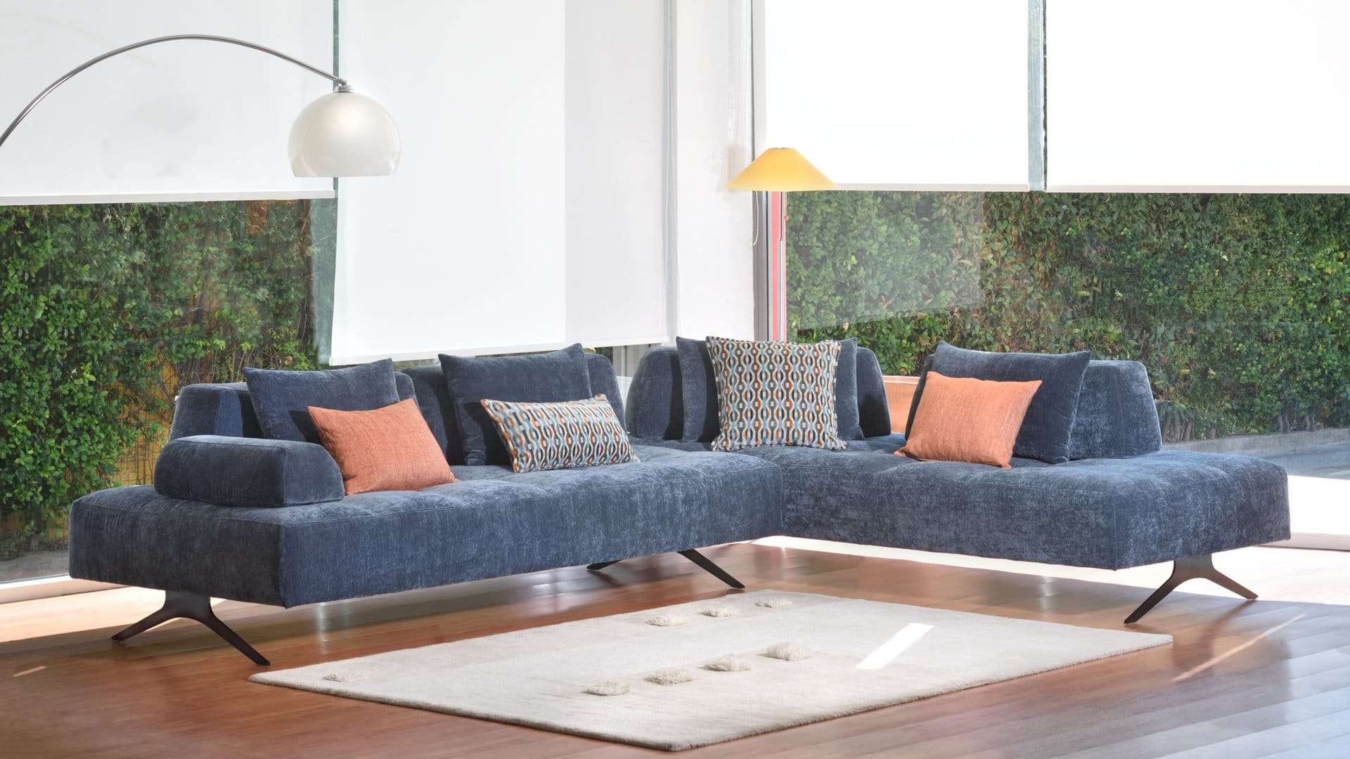 Γωνιακός καναπές 2 τεμαχίων, με λάστιχο υψηλής ποιότητας στο κάθισμα, μεταλλικά πόδια και πλάτες με βαρίδια τα οποία είναι αποσπόμενα από τον καναπέ. Διατίθεται σε διάφορες διαστάσεις, με ύφασμα & απόχρωση υφάσματος της επιλογής σας.