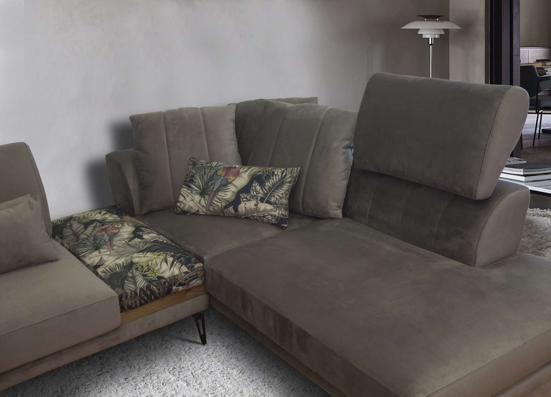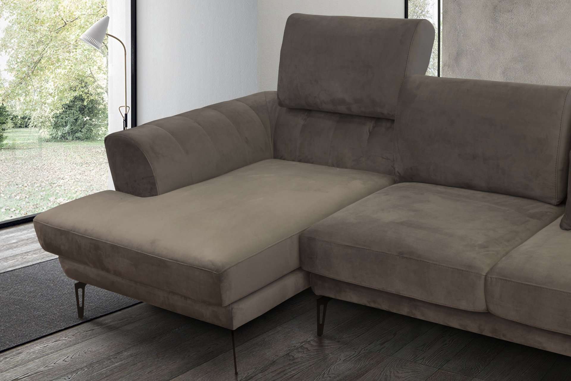 Γωνιακός καναπές 3 τεμαχίων, με λάστιχο υψηλής ποιότητας στο κάθισμα, μηχανισμό στην πλάτη που μας στηρίζει το κεφάλι. Διατίθεται σε διάφορες διαστάσεις, με ύφασμα & απόχρωση υφάσματος της επιλογής σας όπως και αποχρώσεις ξύλου.