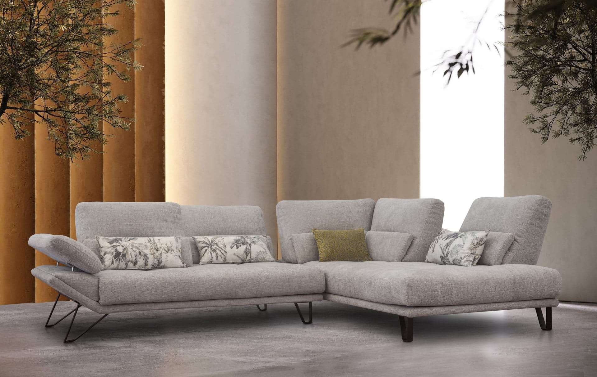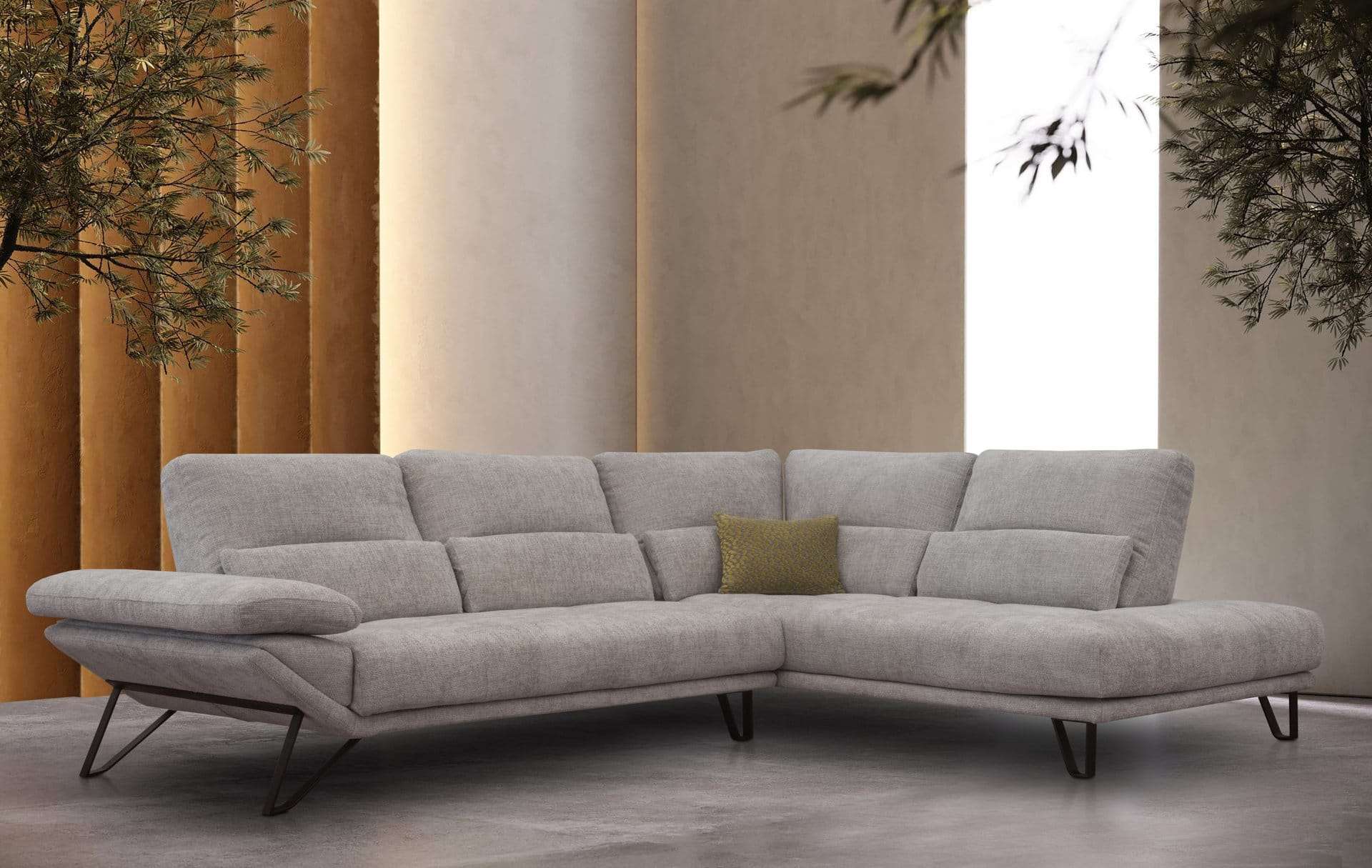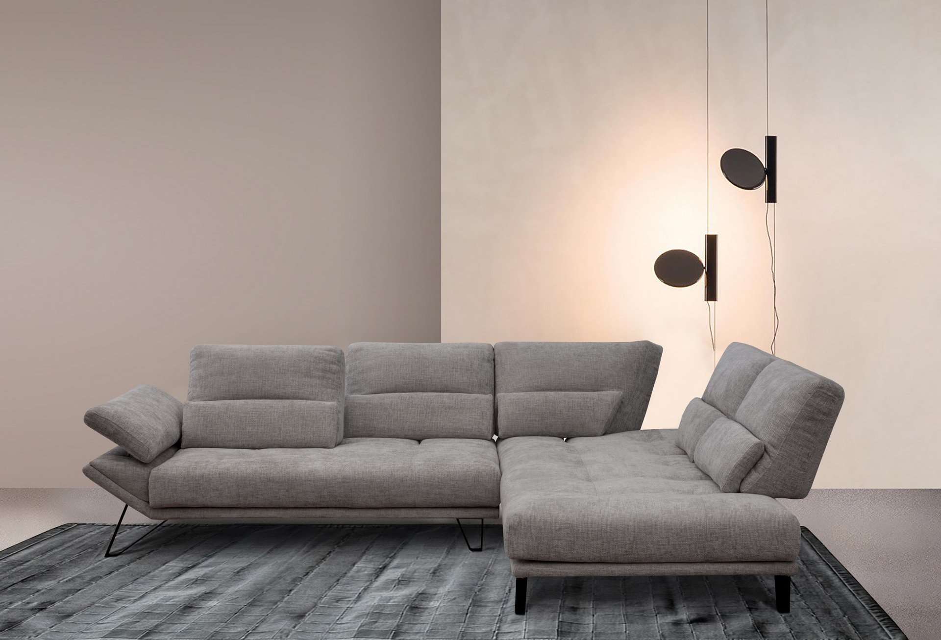 Γωνιακός καναπές 2 τεμαχίων, με λάστιχο υψηλής ποιότητας στο κάθισμα, ψηλά μεταλλικά πόδια και μηχανισμό στην πλάτη που μας δίνει όλο το βάθος του καναπέ. Διατίθεται σε διάφορες διαστάσεις, με ύφασμα & απόχρωση υφάσματος της επιλογής σας.