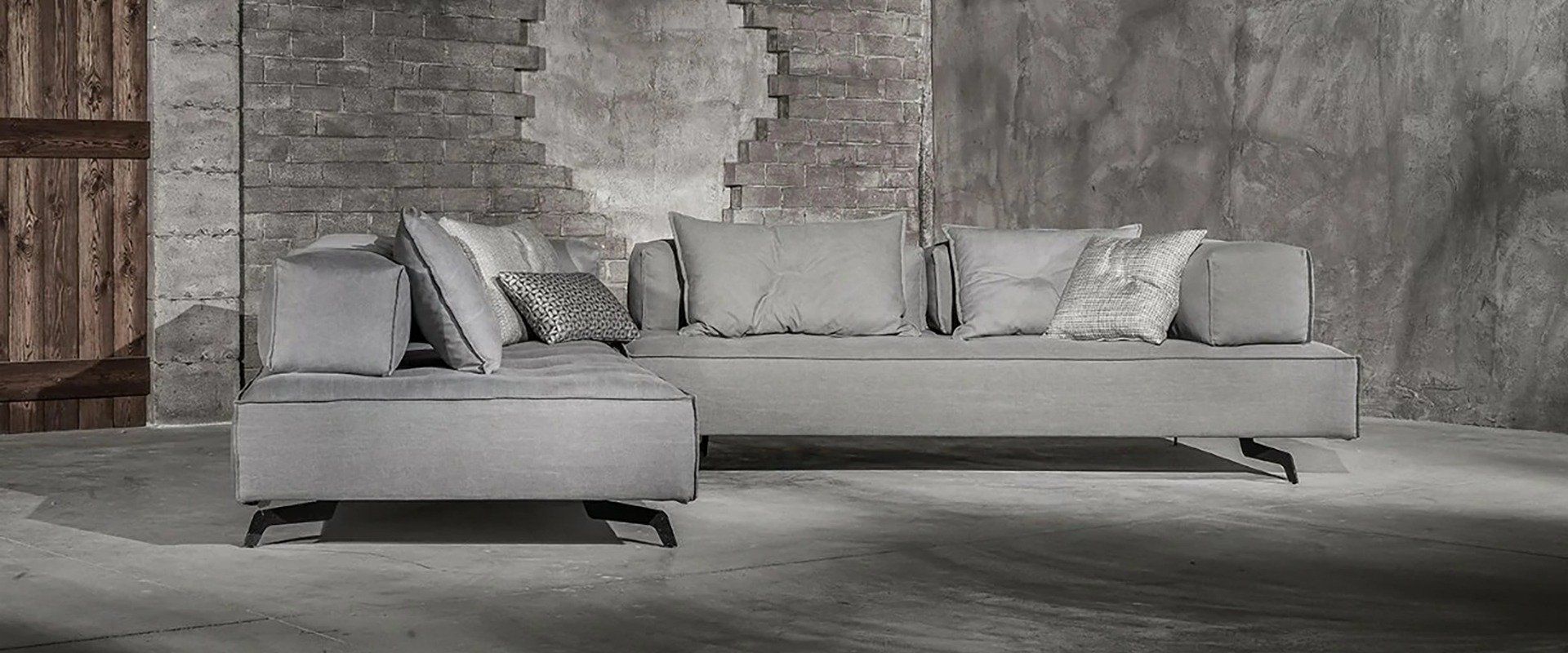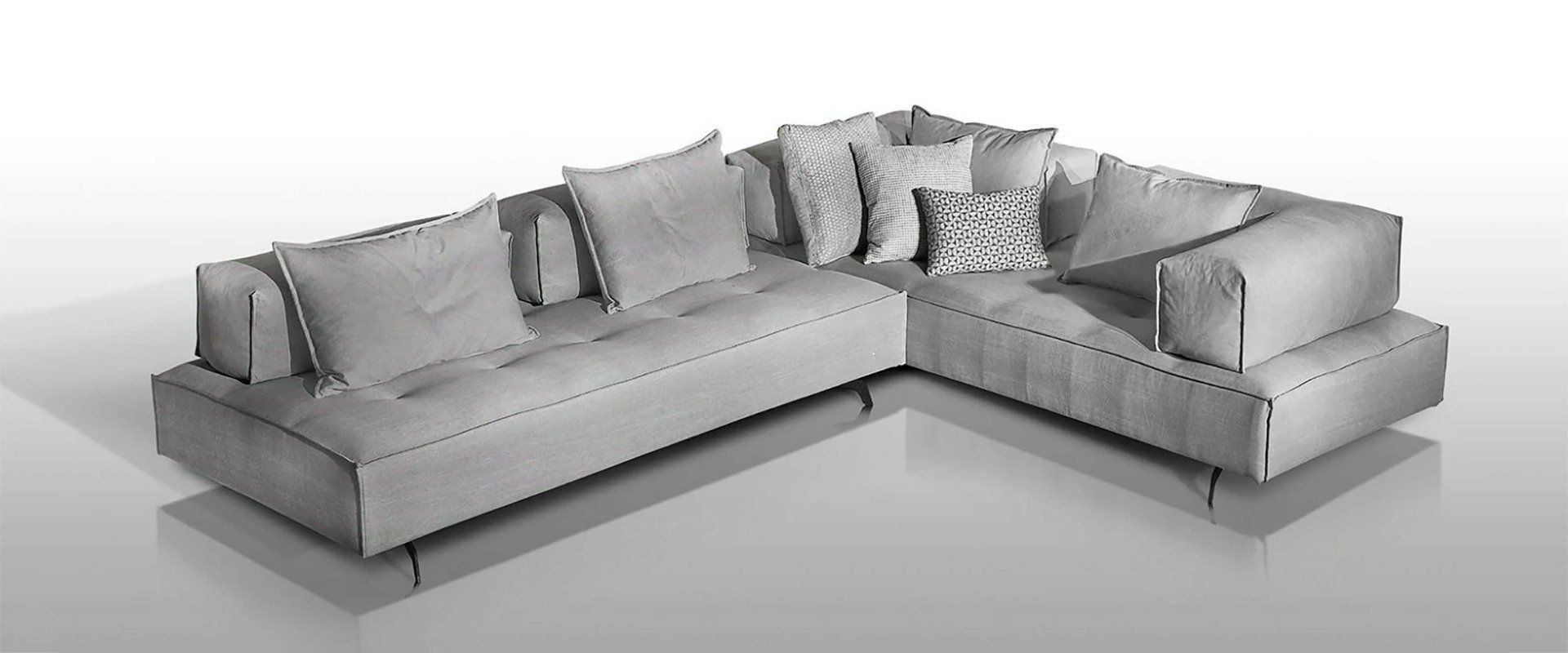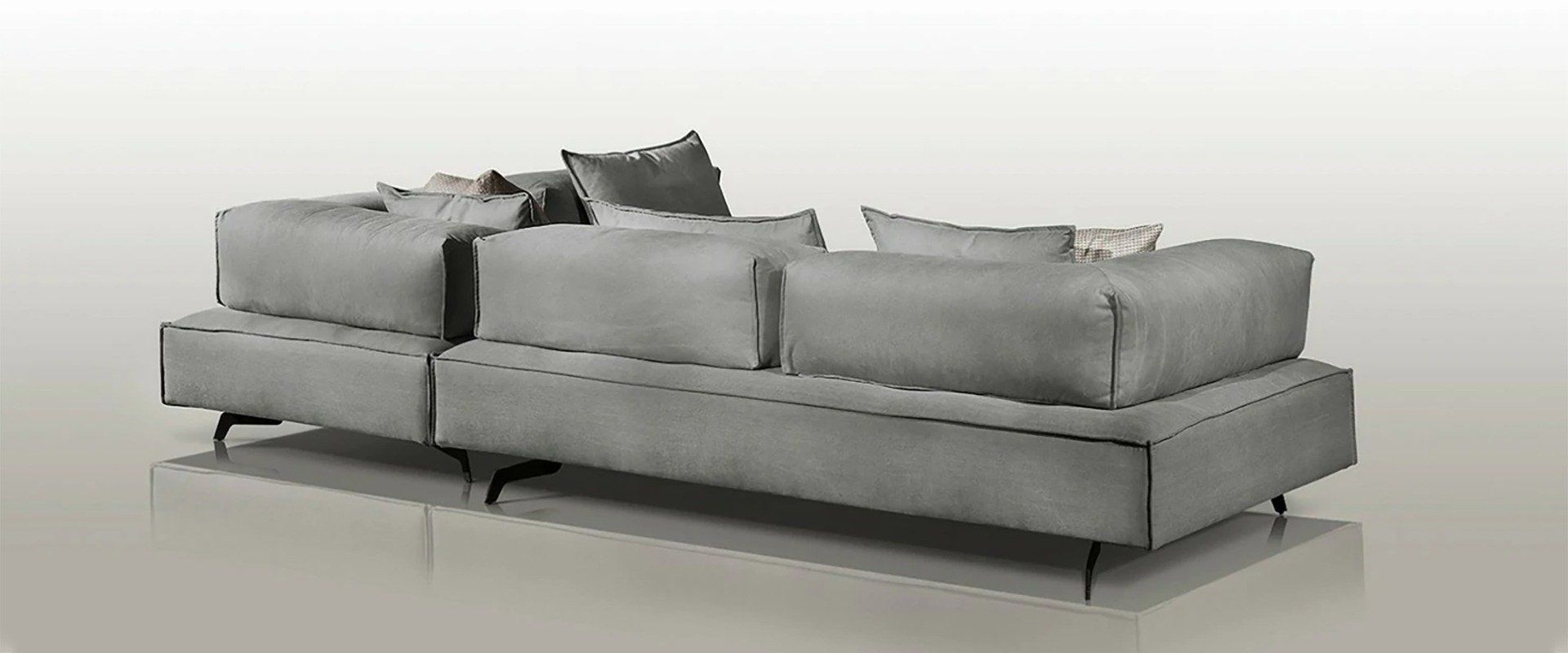 Γωνιακός καναπές, με ισχυρή προσωπικότητα που χαρακτηρίζεται από σημαντικούς όγκους, άνετο κάθισμα και μεταλλικά πόδια.