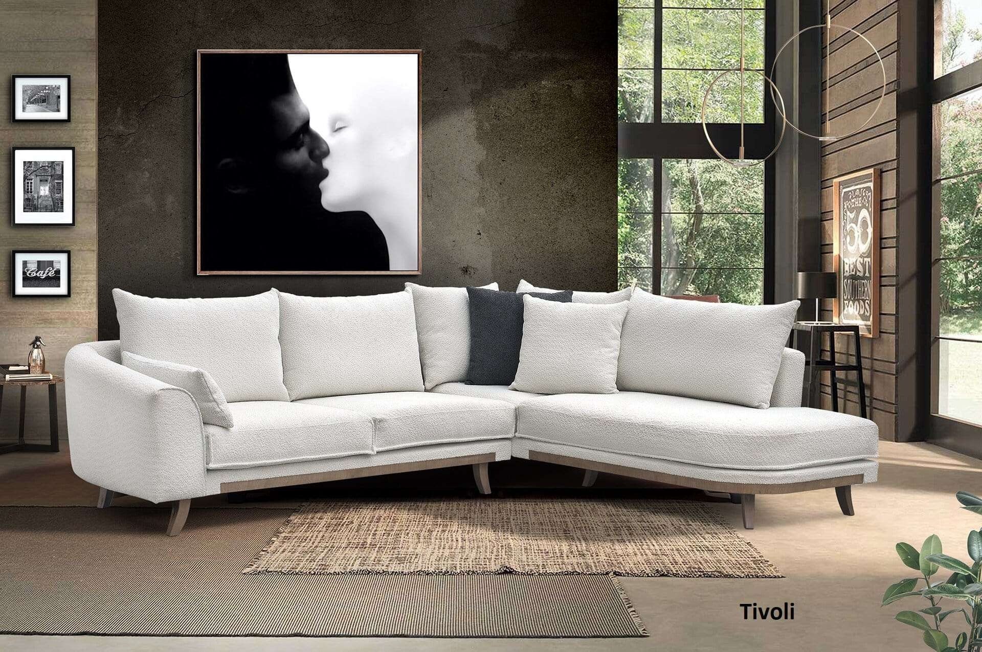 Γωνιακός καναπές 2 τεμαχίων, με λάστιχο υψηλής ποιότητας στο κάθισμα, με επιλογή ξύλινης μπάζας στην μπάζα ή οχι και ψηλά πόδια. Διατίθεται σε διάφορες διαστάσεις, με ύφασμα & απόχρωση υφάσματος της επιλογής σας όπως και αποχρώσεις ξύλου.