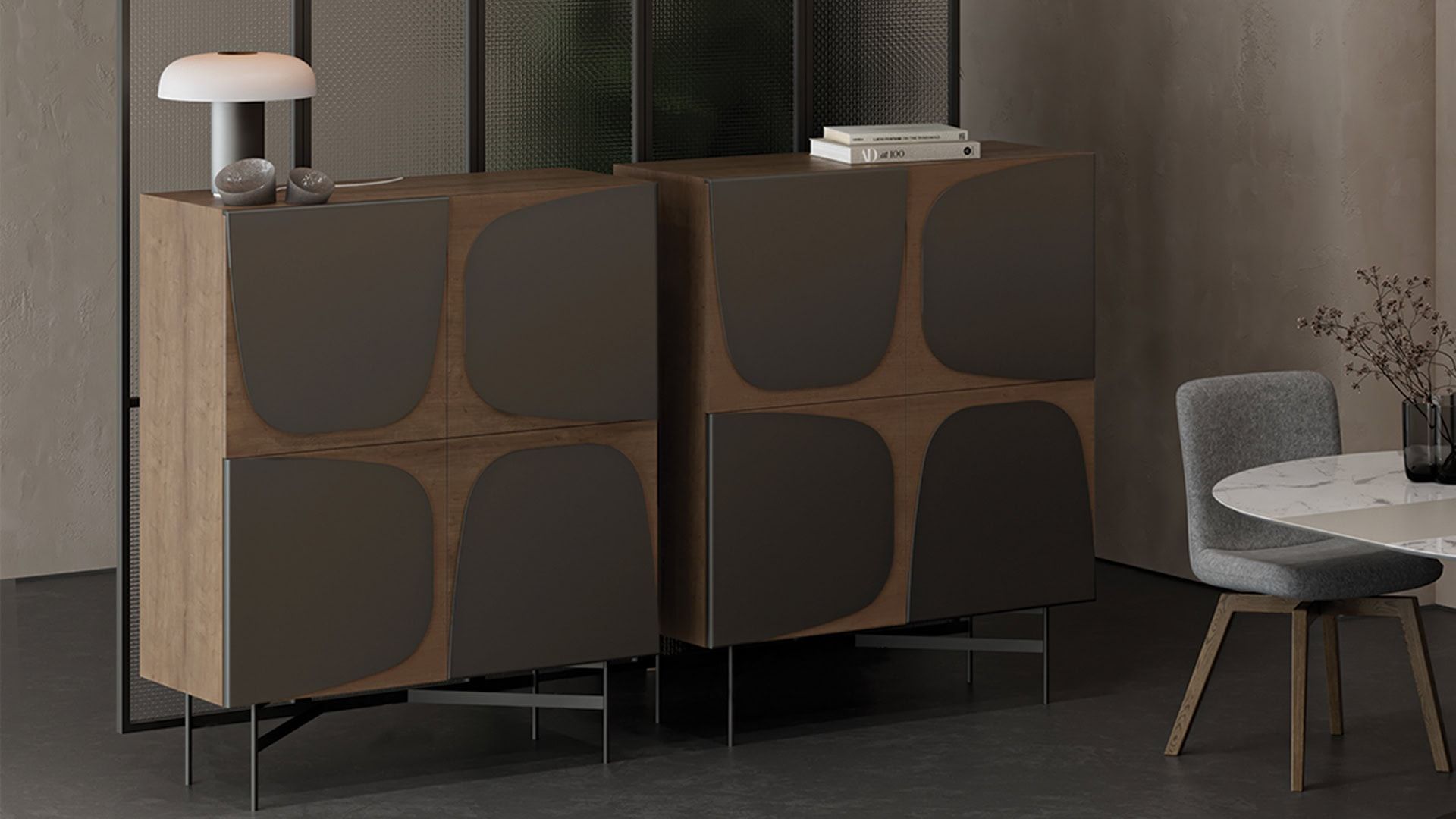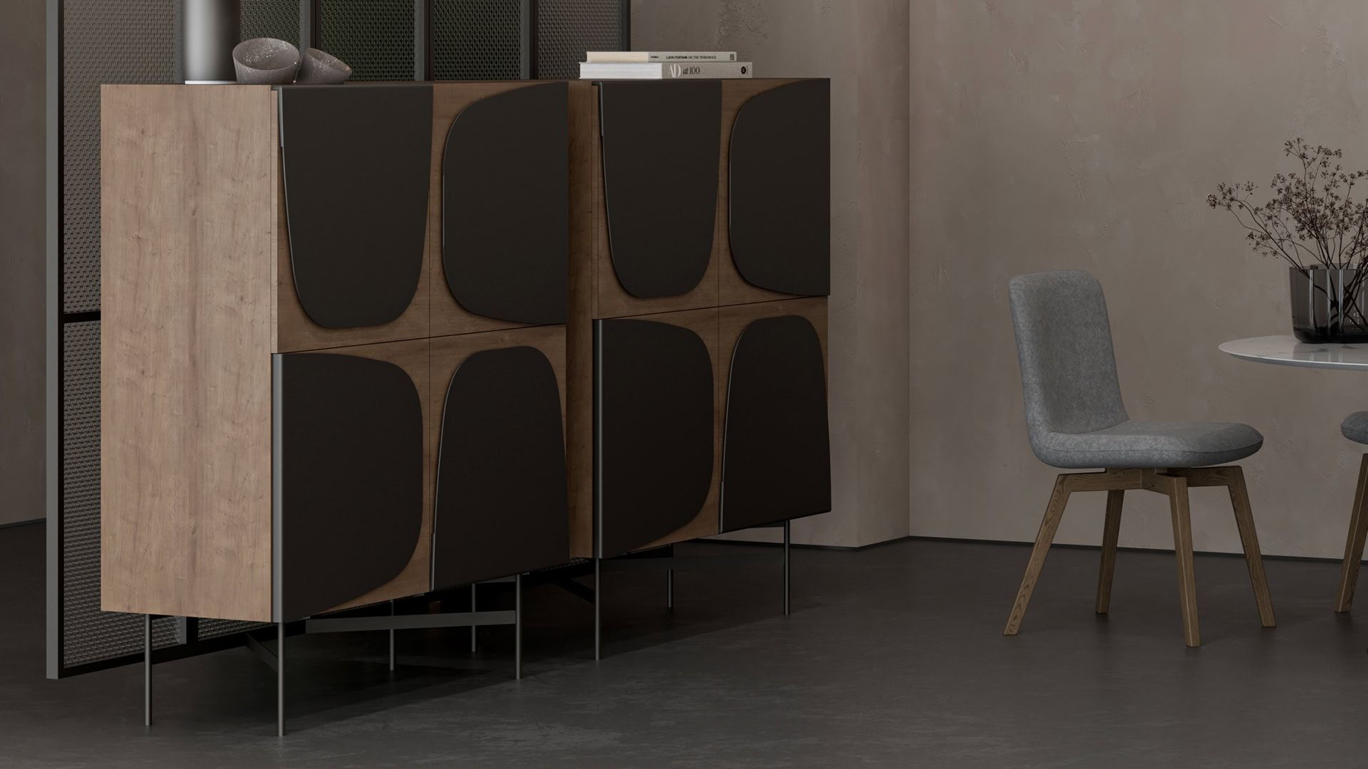 Highboard Axis δρυς με κουρμπαριστές λεπτομέριες από λάκα Δυνατότητα αλλαγής διαστάσεων και επιλογής ξύλου