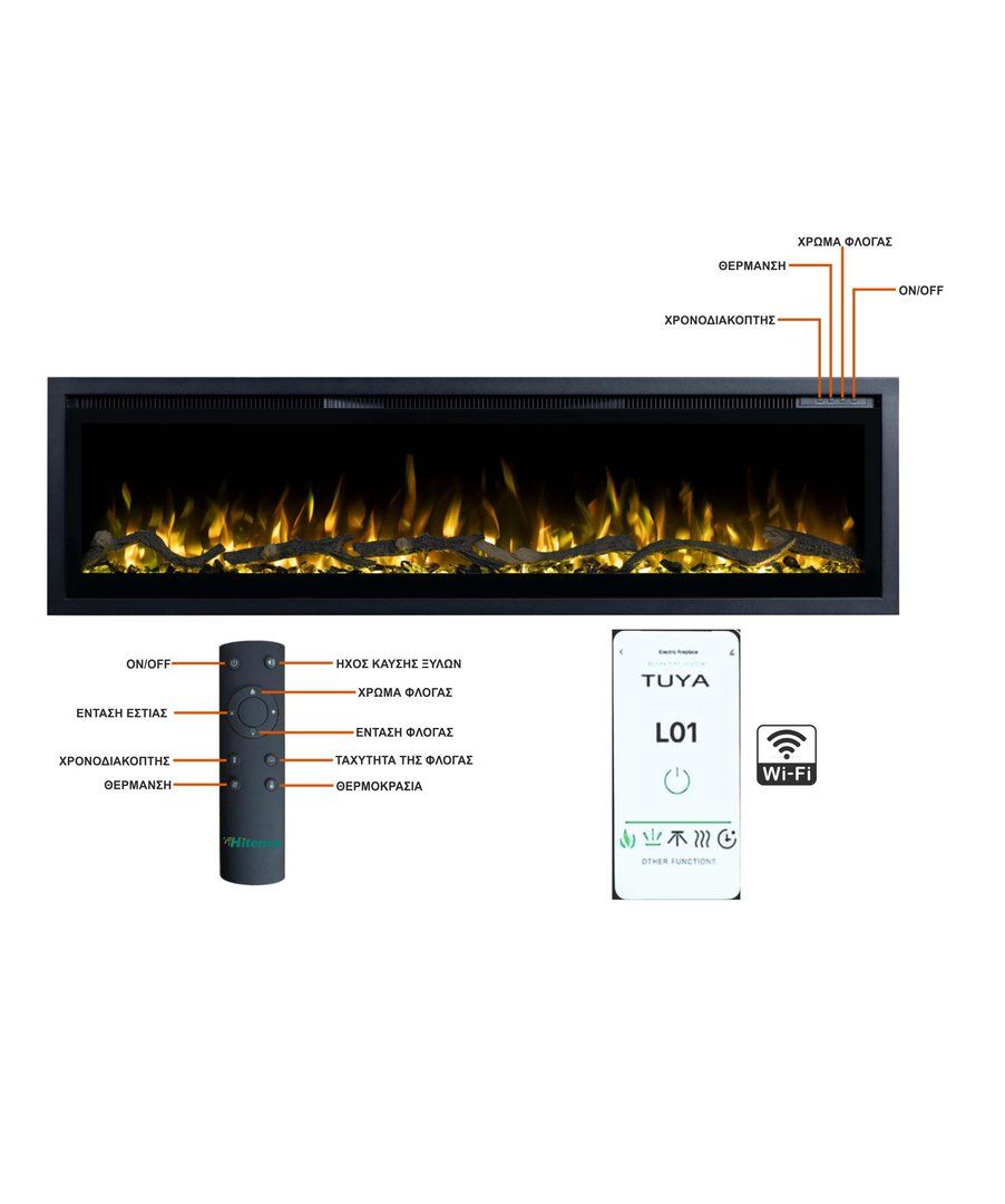 ΕΠΙΤΟΙΧΙΟ ΚΑΙ ΕΝΘΕΤΟ ΗΛΕΚΤΡΙΚΟ ΤΖΑΚΙ SMART L.E.D Notting Hill-50 Model: Notting Hill-50 1800W ΤΕΧΝΙΚΑ ΧΑΡΑΚΤΗΡΙΣΤΙΚΑ Εφέ φλόγας με χρήση ξύλου Εφέ φλόγας με χρήση ειδικών κρυστάλλων στάχτης Εφέ φλόγας με χρήση ξύλου και κρυστάλλων στάχτης Πολλές επιλογές τοποθέτησης Πρόσοψη από ίσιο γυαλί ασφαλείας Slim line υψηλή αισθητική με μικρή απόσταση από τον τοίχο Flat Line με μεγάλη οθόνη ( Ultra screen ) Τηλεχειριστήριο λειτουργιών Δυνατότητα σύνδεσης με wifi και πλήρης έλεγχος λειτουργίας με το κινητό σε όλο το σπίτι. Με μια απλή διαδικασία κατεβάζοντας την εφαρμογή TUYA SMART APP Συμβατή για όλα τα smartphone ( IOS & Android ), δίνονται οδηγίες στα Ελληνικά και στα Αγγλικά Επιπλέον χειροκίνητη λειτουργία από την συσκευή ( Με κουμπιά ) Κρυμμένα κουμπιά (control panel) στην συσκευή για υψηλή αισθητική Αυτόματη απόκρυψη ψηφιακών ενδείξεων οθόνης L.E.D (5 δευτερόλεπτα) LED 3D εφέ φλόγας ( Premium ) LED 3D ειδικός κατοπτρισμός ρεαλιστικής απεικόνισης Ρεαλιστική κίνηση φλόγας ανάμεσα στα ξύλα Ρυθμιζόμενη ένταση φλόγας 5 επίπεδα (dimmer) Τεχνολογία εφέ με L.E.D 15 Επιλογές χρώματος φλόγας και εστίας 1) Επιλογή Κλασσικής ρεαλιστικής φλόγας Πορτοκαλί (Orange) 2) Επιλογή ρεαλιστικής φλόγας Μπλε (Aqua Blue) 3) Επιλογή mix ρεαλιστικής Κλασσικής φλόγας μαζί με Μπλε (Frozen Blue) 4) Επιλογή ρεαλιστικής Κόκκινης φλόγας (Volcano Red) 5) Επιλογή mix ρεαλιστικής Πορτοκαλή φλόγας με Κόκκινη (Orange + Volcano Red) 6) Επιλογή mix Μπλε φλόγας με Πορτοκαλί (Aqua Blue + Orange) 7) Επιλογή ρεαλιστικής Πράσινης φλόγας (Green) 8) Επιλογή mix ρεαλσιτκής Πράσινης φλόγας με Πορτοκαλί (Green + Orange) 9) Επιλογή mix ρεαλιστικής Κίτρινη με Πράσινη (Yellow + Green) 10) Επιλογή mix όλων των χρωμάτων, +5 ακόμα χρώματα φλόγας. Ρυθμιζόμενη ένταση φωτεινότητας της εστίας 5 επίπεδα (dimmer) 3 Επιλογές ταχύτητας της φλόγας (1, 2, 3) Ενσωματωμένο σύστημα ήχου κρακινγκ (φλεγόμενου ξύλου) 3 Ρυθμίσεις έντασης ήχου 1 Ρύθμιση χωρίς ήχο Ρυθμιζόμενη θερμοκρασία απο 15 – 30°C Χρονοδιακόπτης εώς και 12 ώρες Ψηφιακές ενδείξεις θερμοκρασίας και χρονοδιακόπτη Δύο επιλογές θέρμανσης 900W / 1800W 1800W max Ξεχωριστή λειτουργία φλόγας-θέρμανσης Ασφάλεια θερμικής αποκοπής Σύστημα εισαγωγής αέρα απο το εμπρός μέρος της συσκευής U.A.F.S ( Ultra Air Flow System ) Εξαγωγή ζεστού αέρα από το εμπρός μέρος της συσκευής Τοποθέτηση επιτοίχια Τοποθέτηση εντιχοιζόμενη Τοποθέτηση επιδαπέδια Κατασκευάζεται με την τεχνολογία Erp (Eco Design Europe) για χαμηλή κατανάλωση ρεύματος Κατασκευάζεται βάσει των πιστοποιήσεων ποιότητας της Ευρωπαϊκής Ένωσης ( CE ) Ιδανικό για σπίτι , ξενοδοχείο, καφετέριες , εστιατόρια Διαστάσεις 126.2cm x 11.8cm x 35cm ( M x Π x Υ ) Βάρος 20kg Πολλές επιλογές τοποθέτησης Εγγύηση ποιότητας Ηitense 2 χρόνια εγγύηση www.Ηitense.gr Περιλαμβάνεται στην συσκευασία ασύρματο χειριστήριο (κοντρόλ) Περιλαμβάνεται στην συσκευασία 1 πακέτο με ξύλα Περιλαμβάνεται στην συσκευασία 1 πακέτο με ειδικούς κρυστάλλους στάχτης Περιλαμβάνεται στην συσκευασία βάση δαπέδου ( 2 τεμάχια ) Περιλαμβάνεται στην συσκευασία όλο το πακέτο στήριξης τοίχου (βάση , βίδες , ούπα ) Περιλαμβάνεται στην συσκευασία βιβλιαράκι με οδηγίες χρήσης και τοποθέτησης Κωδικός ΕΑΝ (BARCODE) : 5200318207206 www.hitense.gr