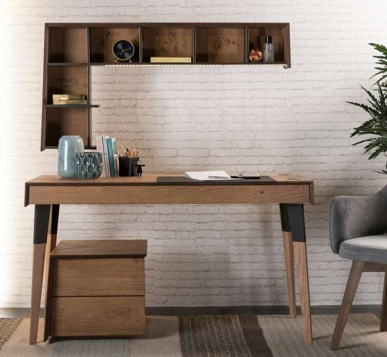 Join Γραφείο Ίσιδα. Ελληνικής κατασκευής. Πρακτικό, λειτουργικό και κατάλληλο για μικρούς χώρους είναι το νέο γραφείο που υπογράφει η Join. Ο μίνιμαλ σχεδιασμός του, με ενσωματωμένο φωτισμό, το καθιστά κατάλληλο να τοποθετηθεί ακόμη και στο καθιστικό, σε ένα χολ ή στον χώρο της τραπεζαρίας αποτελώντας μια ιδιαίτερη διακοσμητική πρόταση. Ξύλο: ελιά Διάσταση: 131,2cm x 51,9cm x 76,4cm *Η συρταριέρα είναι στο κόστος. *Η ραφιέρα δεν συμπεριλαμβάνεται στο κόστος.