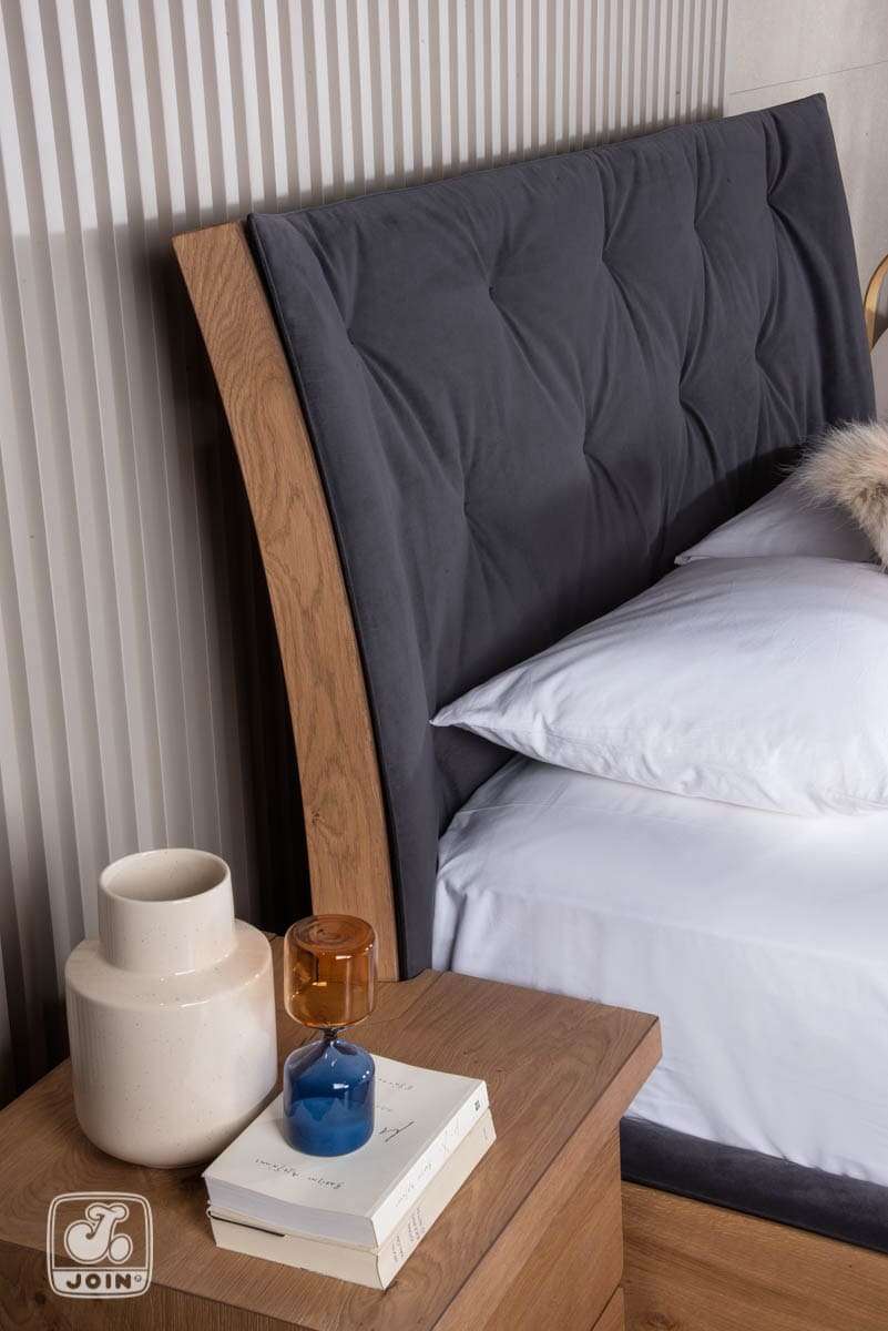 Πρωταγωνιστεί στο δωμάτιο με κομψότητα που το κάνει ιδανικό για λιτές κρεβατοκάμαρες ακόμα και χωρίς τη συνοδεία κομοδίνου. Προσεγμένο μέχρι και τη τελευταία λεπτομέρεια, γαζωμένο και ντυμένο στο χέρι με τη δυνατότητα εξ’ολοκλήρου αφαίρεσης του υφάσματος που δύσκολα διακρίνεται με τη πρώτη ματιά. Το ψηλό του κεφαλάρι δίνει έναν επιβλητικό τόνο και η βάση του δίνει την αίσθηση ότι αιωρείται.