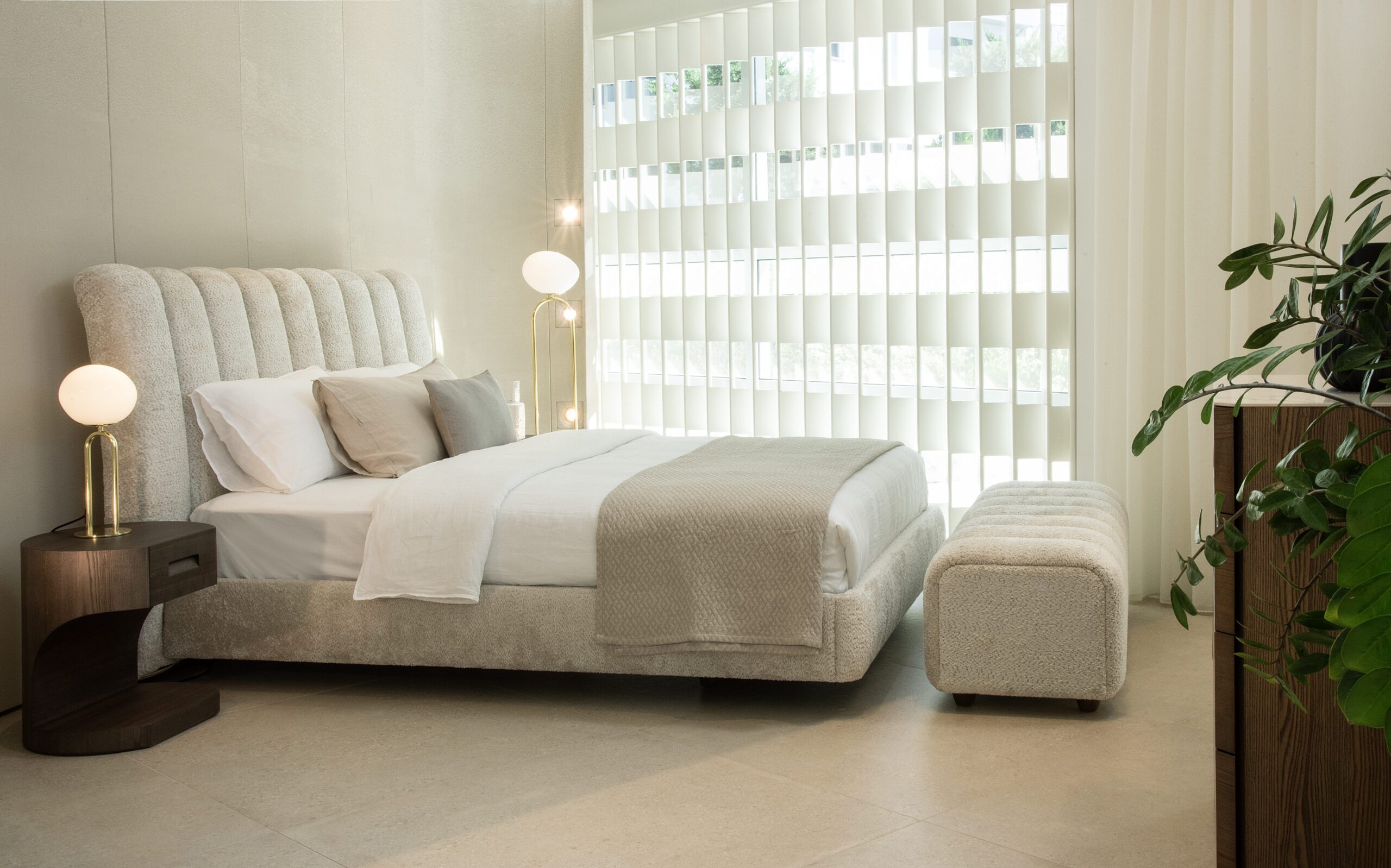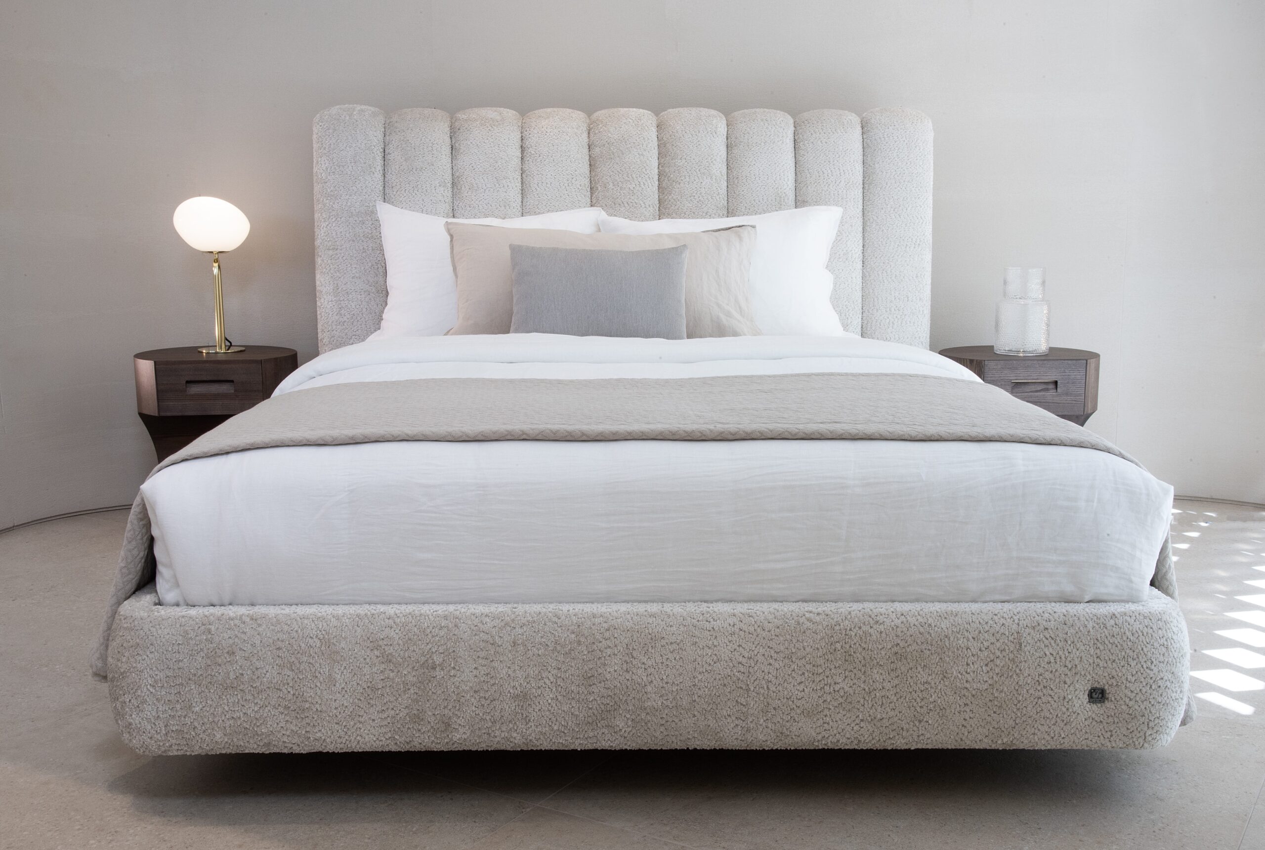 Σύγχρονη κρεβατοκάμαρα με κομψό σχεδιασμό και φυσικές αποχρώσεις ξύλου. Η Φήμη συνδυάζει άνεση και στυλ, με επένδυση υφάσματος και εργονομικό κεφαλάρι. Το σύνολο συμπληρώνεται με λειτουργικά κομοδίνα και μοντέρνα διακόσμηση, δημιουργώντας έναν ήρεμο και φιλόξενο χώρο ύπνου.