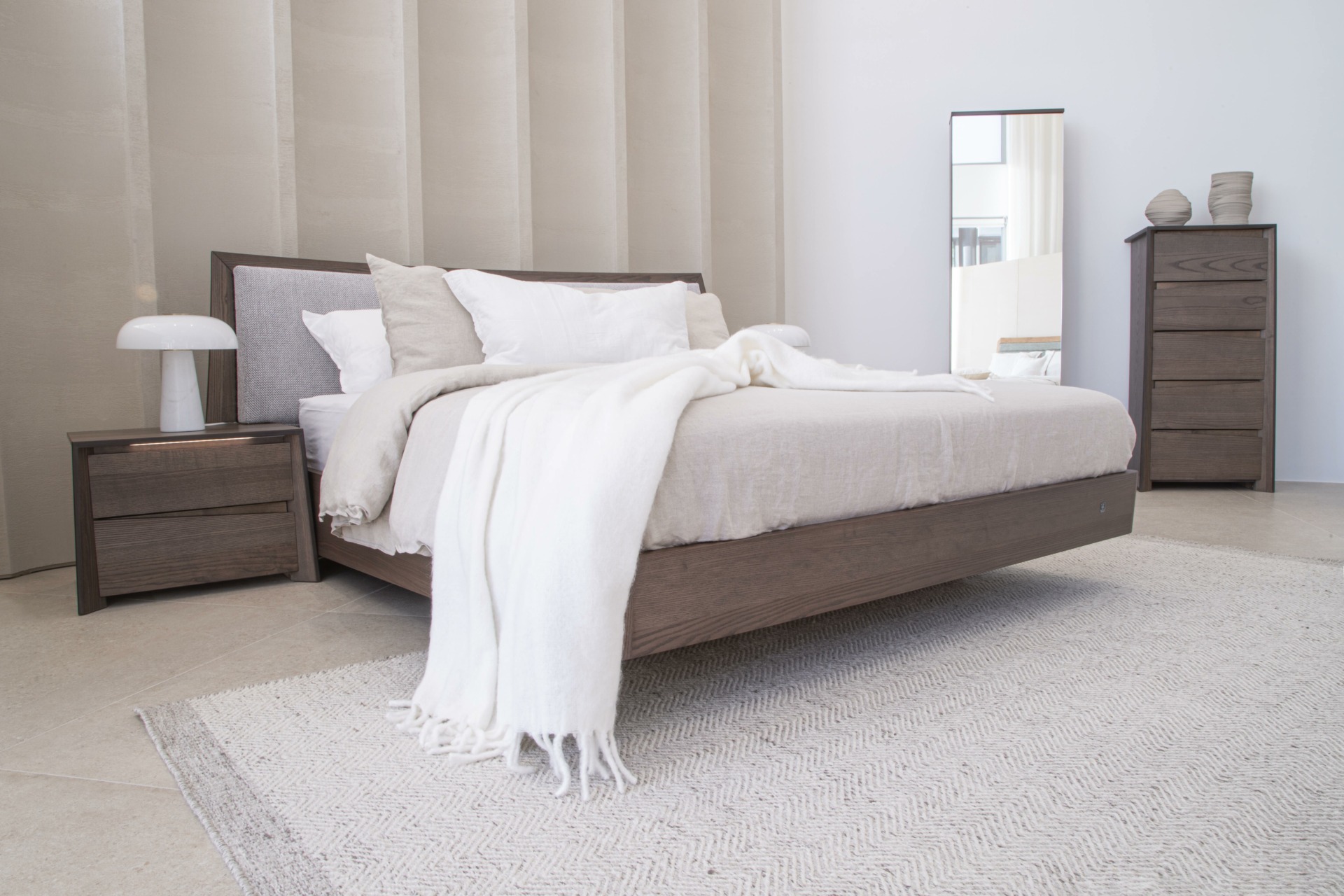 Πρωταγωνιστεί στο δωμάτιο με κομψότητα που το κάνει ιδανικό για λιτές κρεβατοκάμαρες ακόμα και χωρίς τη συνοδεία κομοδίνου.