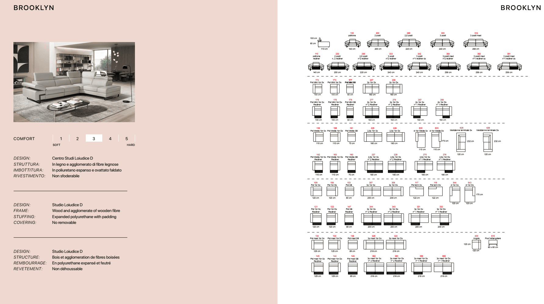 Ιταλικός καναπές Brooklyn. Διατίθεται σε γωνιακό, τριθέσιο, διθέσιο και πολυθρόνα. Κατασκευάζεται στην Ιταλία με γνήσιο δέρμα 100% με χρώματα και ποιότητες της επιλογής σας, ή μπορεί να κατασκευαστεί με ύφασμα σε ποιότητα και χρώμα που θα επιλέξετε. Δυνατότητα ηλεκτρικού μηχανισμού relax