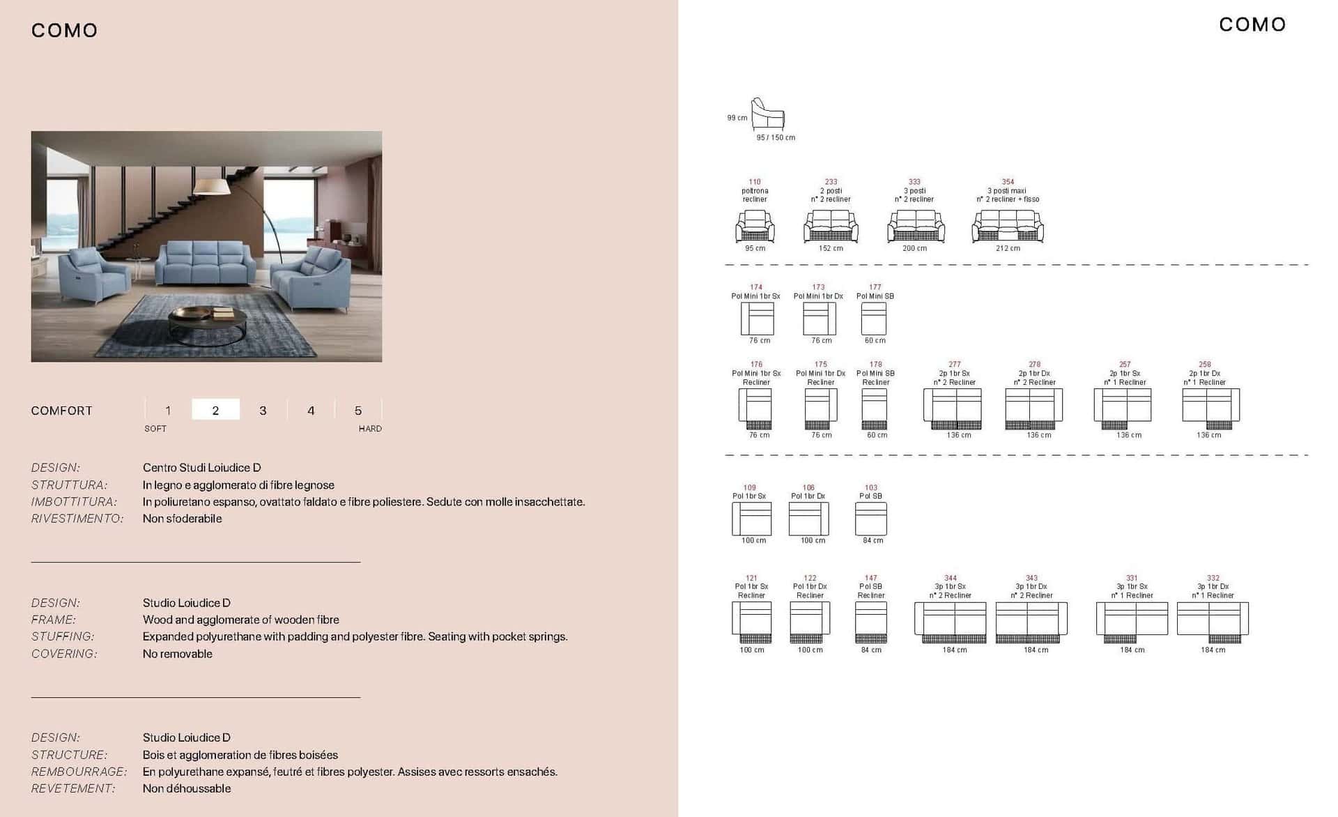 Ιταλικός καναπές Como. Διατίθεται σε γωνιακό, τριθέσιο, διθέσιο και πολυθρόνα. Κατασκευάζεται στην Ιταλία με γνήσιο δέρμα 100% με χρώματα και ποιότητες της επιλογής σας, ή μπορεί να κατασκευαστεί με ύφασμα σε ποιότητα και χρώμα που θα επιλέξετε. Δυνατότητα ηλεκτρικού μηχανισμού relax