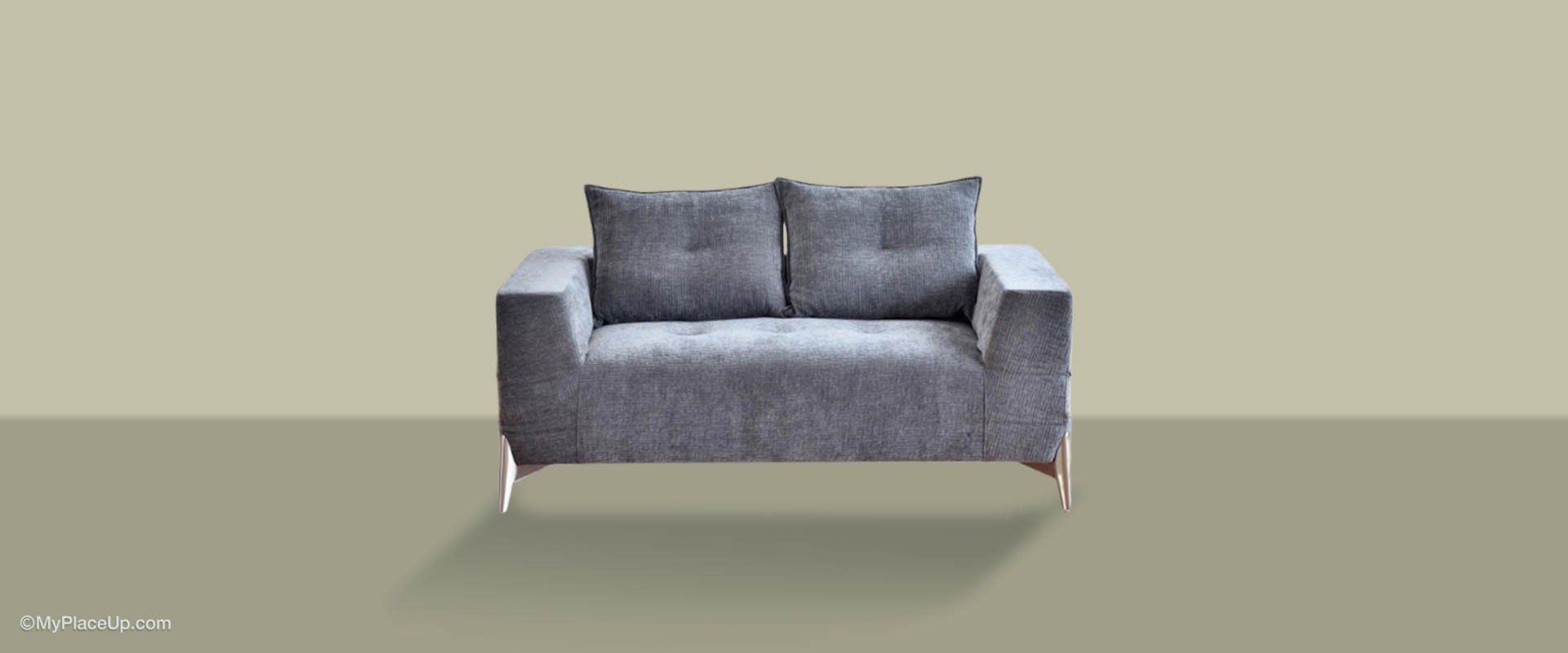 Διθέσιος καναπές 165*100 με μεταλλικό μαύρο πόδι ή νίκελ ματ και ύφασμα κατηγορίας 1 με επιλογή χρωμάτων.