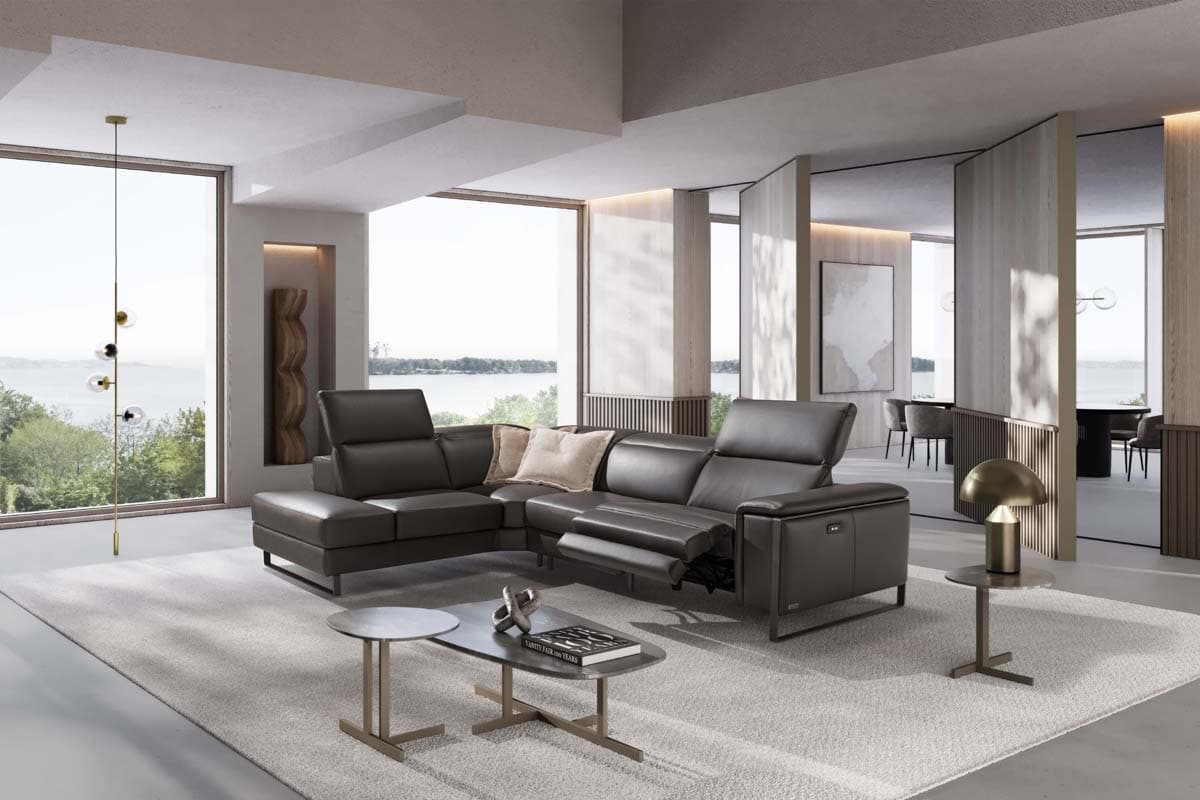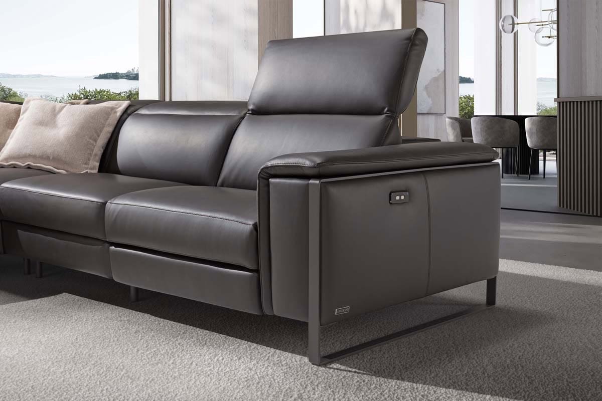 Ιταλικός καναπές Las Vegas. Διατίθεται σε γωνιακό, τριθέσιο, διθέσιο και πολυθρόνα. Κατασκευάζεται στην Ιταλία με γνήσιο δέρμα 100% με χρώματα και ποιότητες της επιλογής σας, ή μπορεί να κατασκευαστεί με ύφασμα σε ποιότητα και χρώμα που θα επιλέξετε. Δυνατότητα ηλεκτρικού μηχανισμού relax