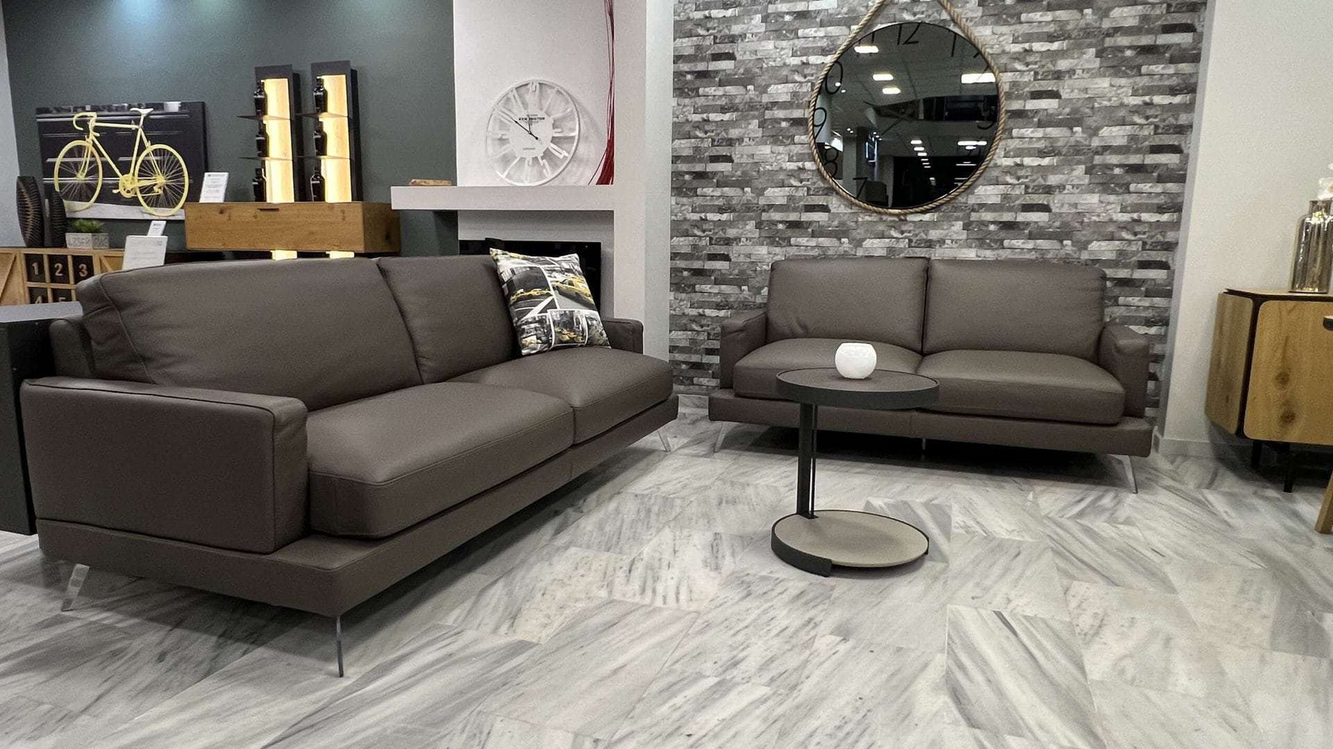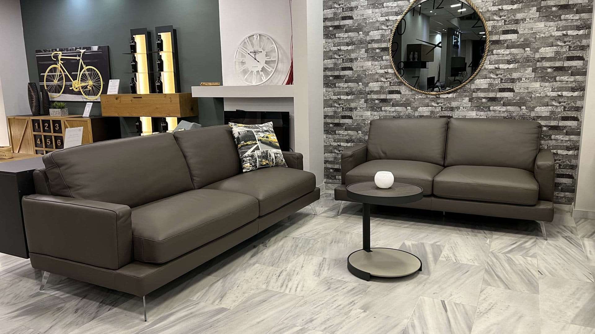 Ιταλικός καναπές Portofino. Διατίθεται σε γωνιακό, τριθέσιο, διθέσιο και πολυθρόνα. Κατασκευάζεται στην Ιταλία με γνήσιο δέρμα 100% με χρώματα και ποιότητες της επιλογής σας, ή μπορεί να κατασκευαστεί με ύφασμα σε ποιότητα και χρώμα που θα επιλέξετε. Προαιρετική είναι η ξύλινη μπάζα στον καναπέ.