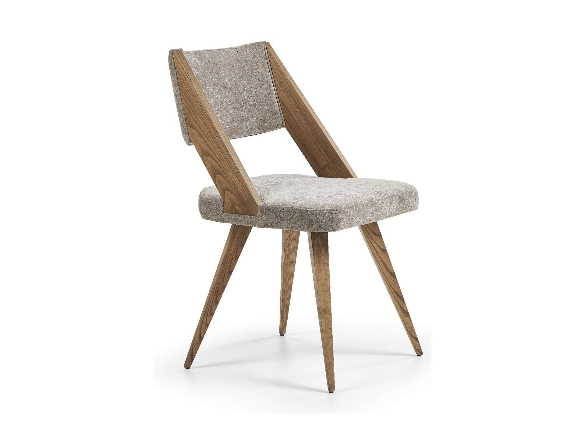 Μοντέρνου σχεδιασμού καρέκλα, ντυμένη με ύφασμα στο κάθισμα και στην πλάτη, ξύλινα στηρίγματα στο πλάι και ξύλινα πόδια. Δυνατότητα προσθήκης περιστρεφόμενου μηχανισμού.