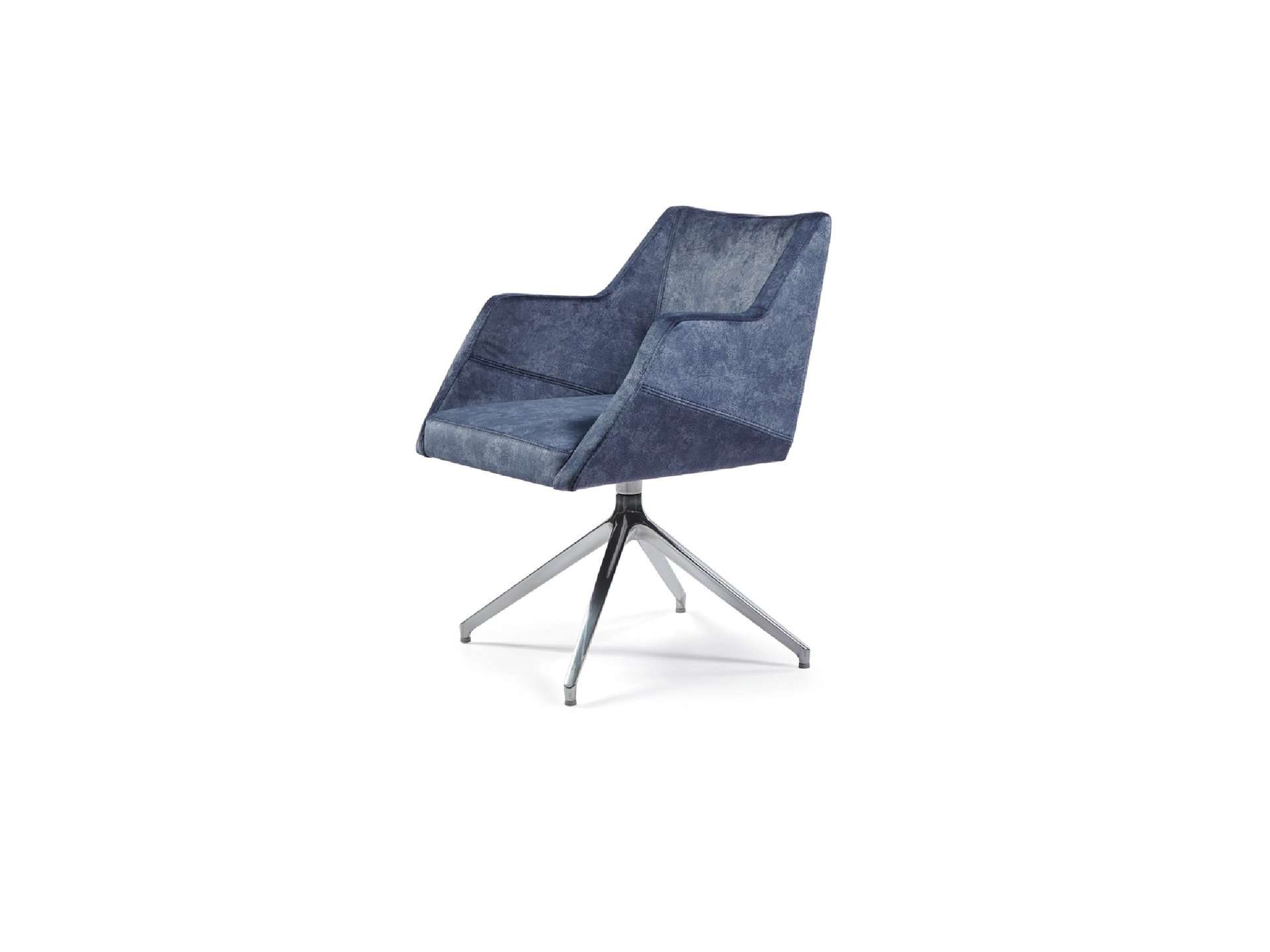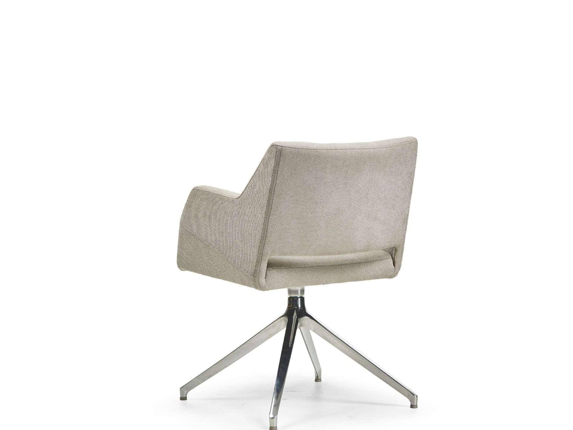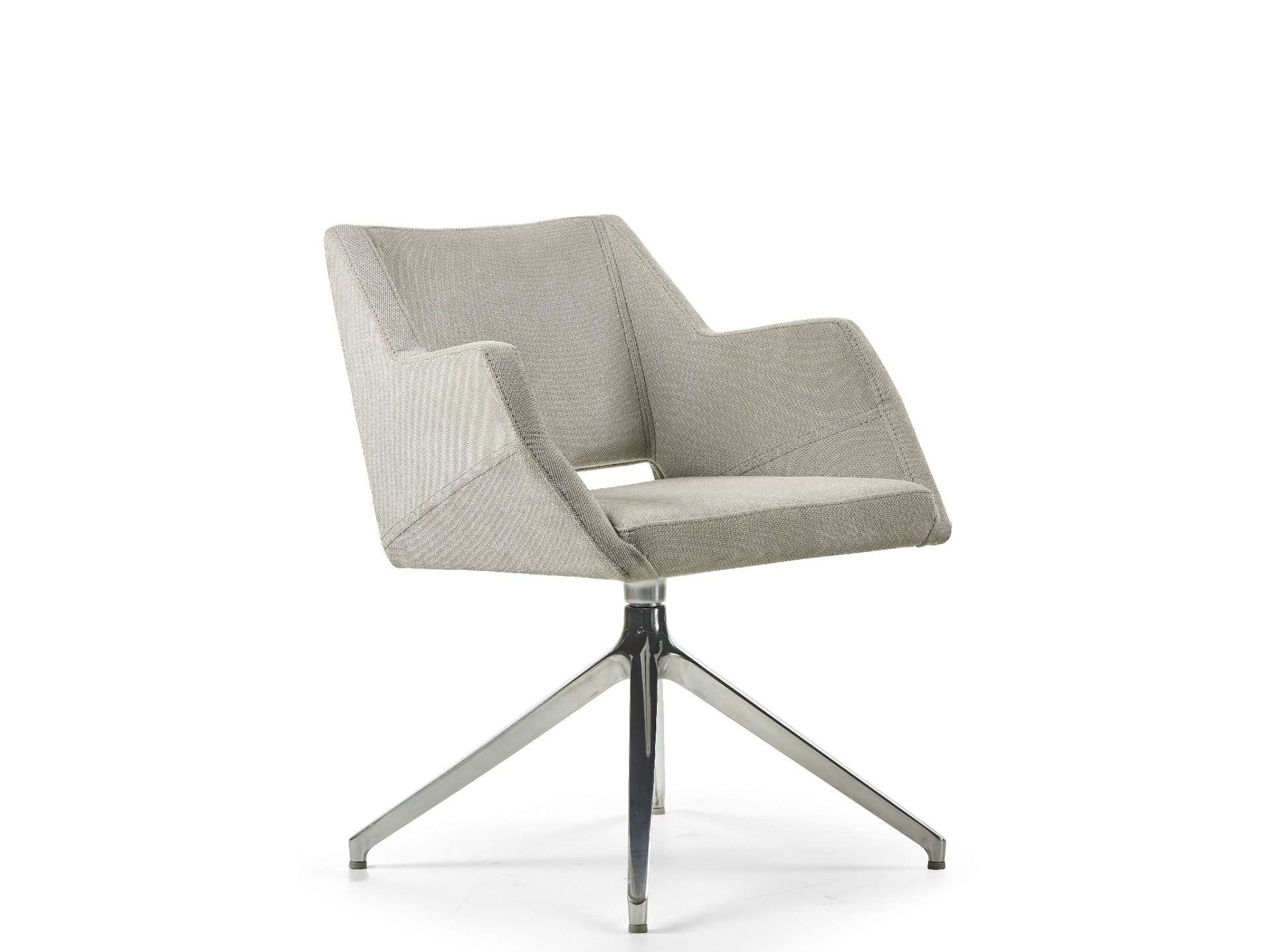 Μοντέρνου σχεδιασμού καρέκλα με μπράτσα, ντυμένη με ύφασμα και μεταλλική περιστρεφόμενη βάση