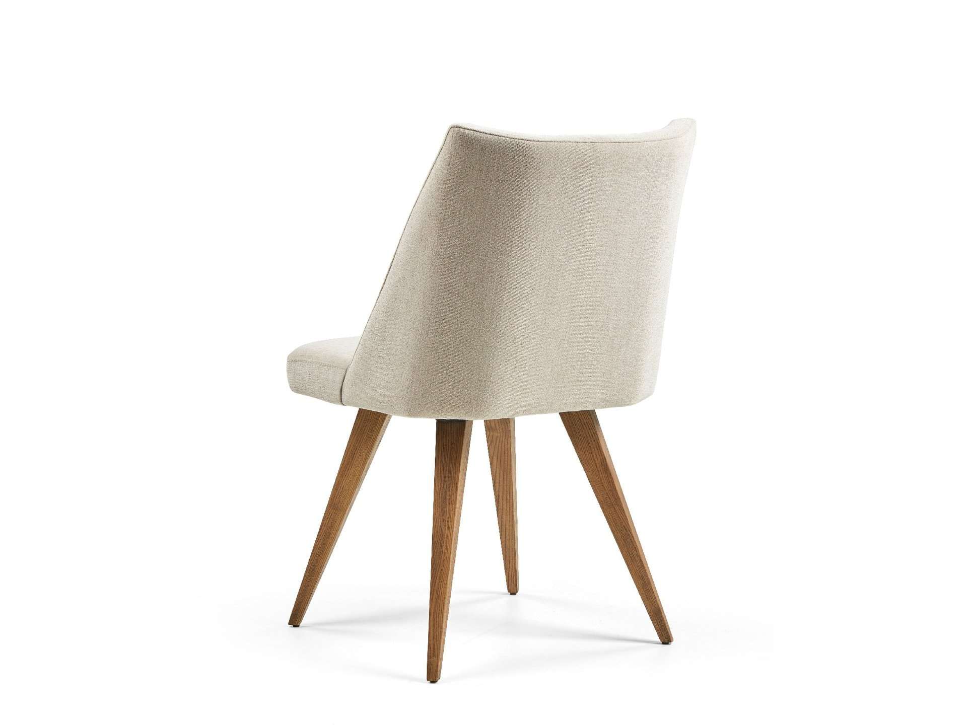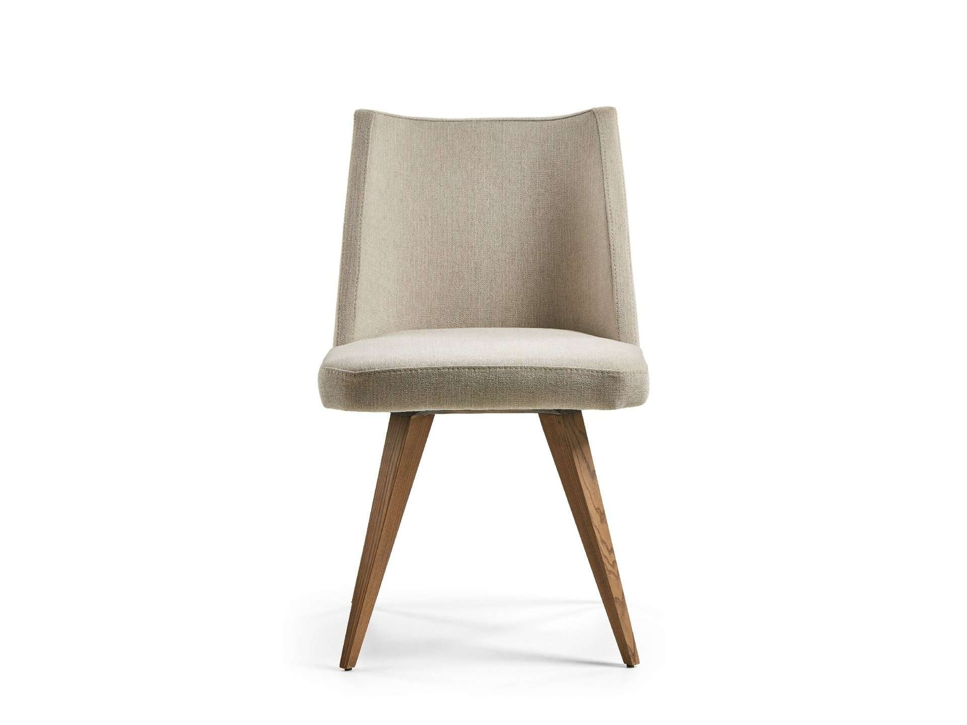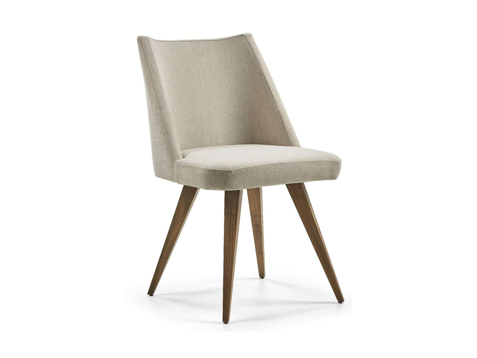 Μοντέρνου σχεδιασμού καρέκλα, ντυμένη με ύφασμα και ξύλινα πόδια. Δυνατότητα προσθήκης περιστρεφόμενου μηχανισμού.