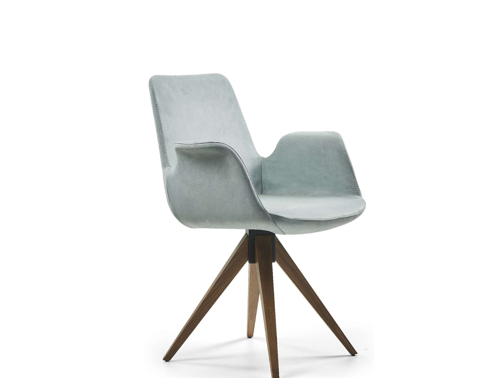 Μοντέρνου σχεδιασμού καρέκλα με μπράτσα, ντυμένη με ύφασμα και ξύλινα πόδια