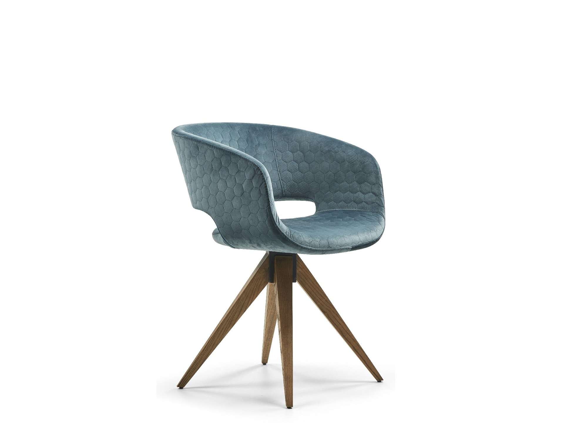 Μοντέρνου σχεδιασμού καρέκλα με μπράτσα, ντυμένη με ύφασμα και ξύλινα πόδια