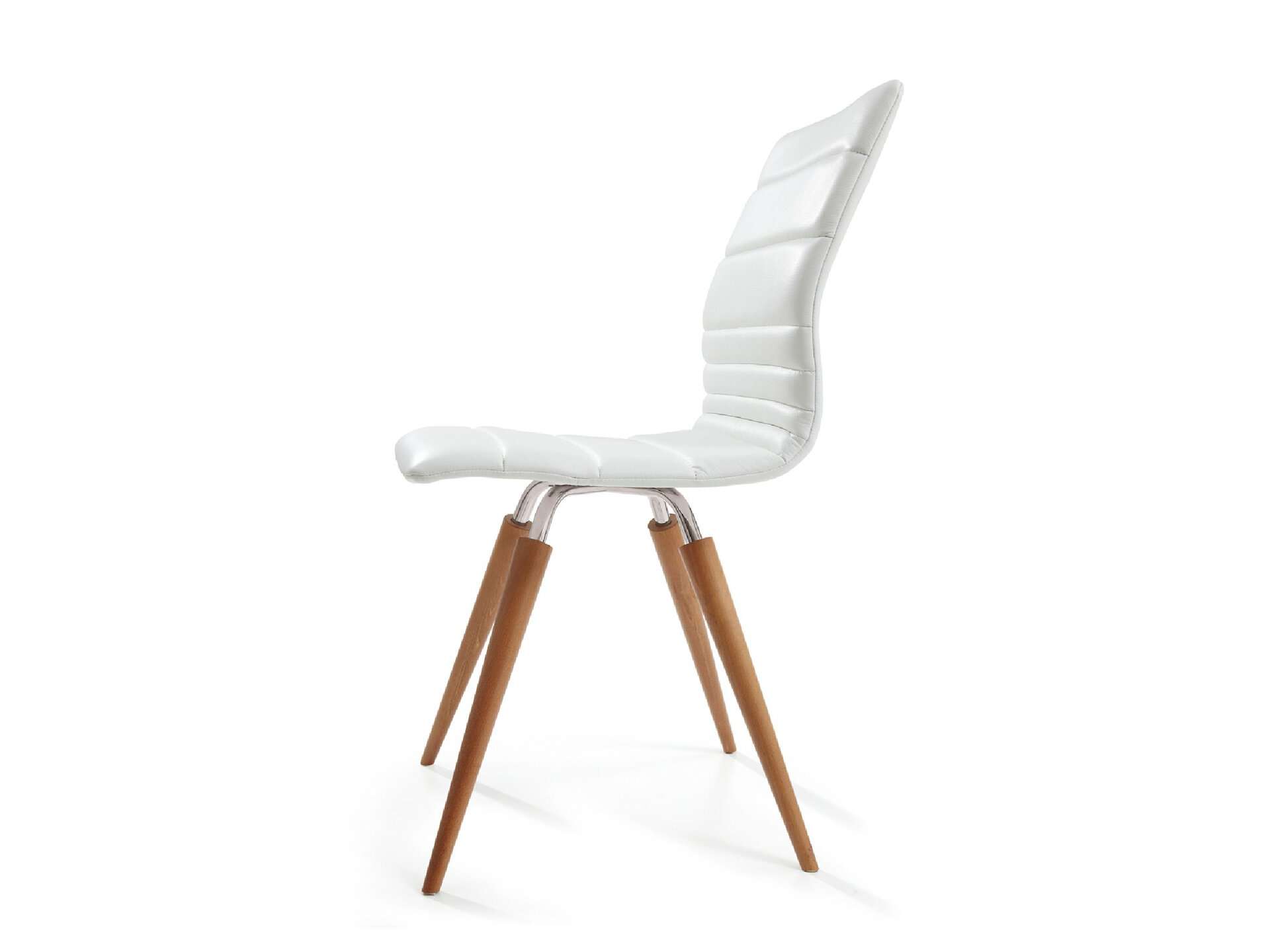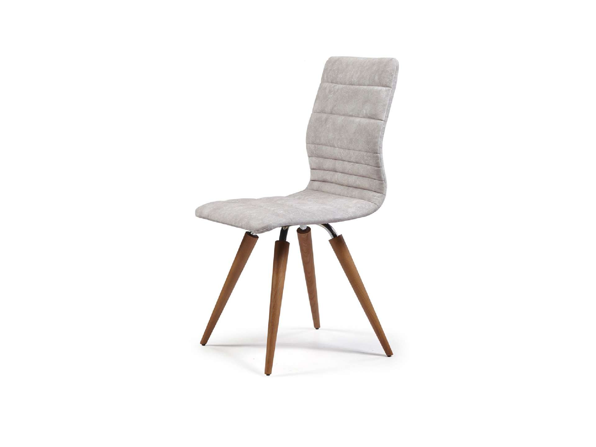 Μοντέρνου σχεδιασμού καρέκλα, ντυμένη με ύφασμα και ξύλινα πόδια με μεταλλικά στοιχεία.