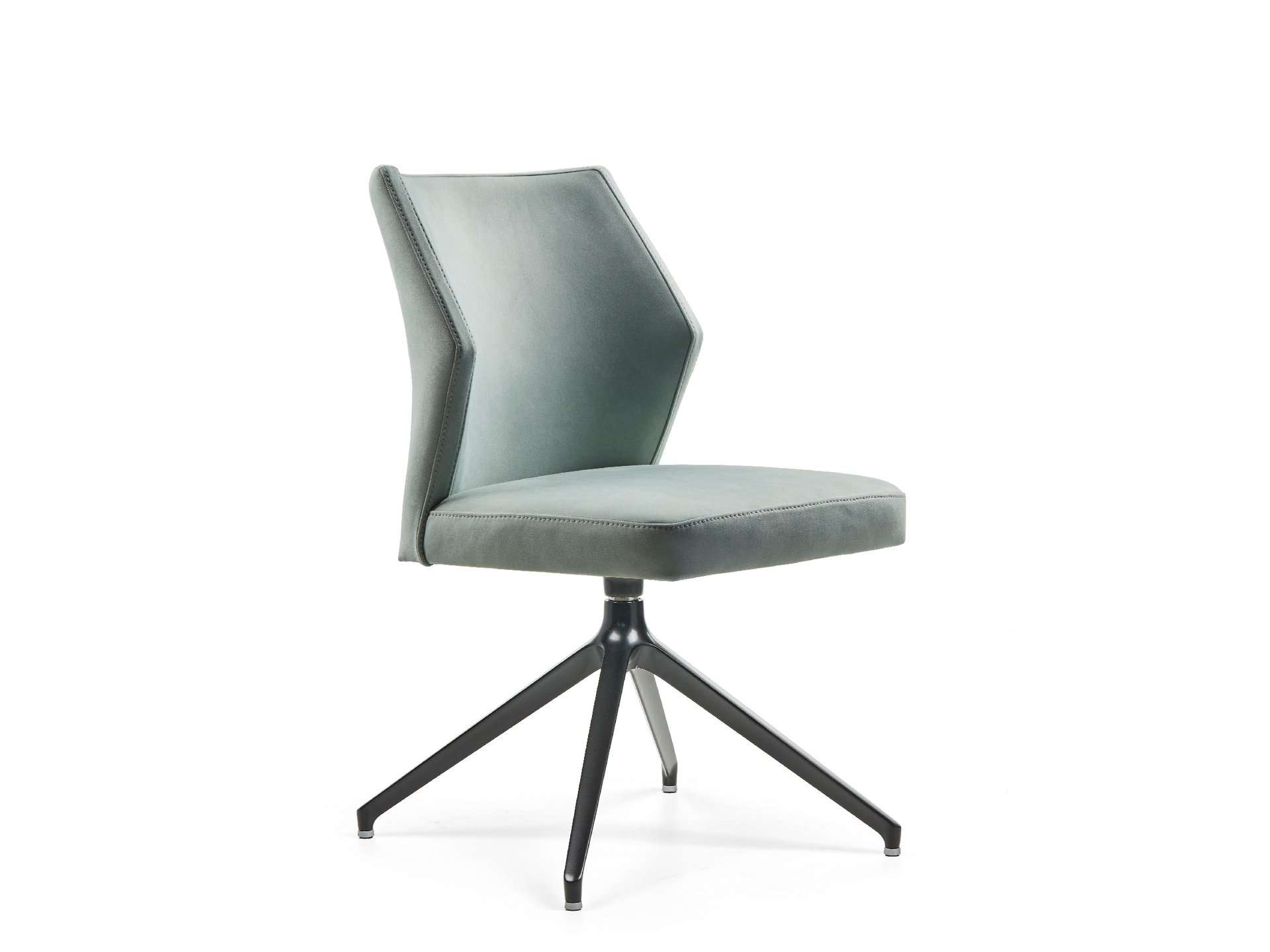 Μοντέρνου σχεδιασμού καρέκλα, ντυμένη με ύφασμα και μεταλλική περιστρεφόμενη βάση.