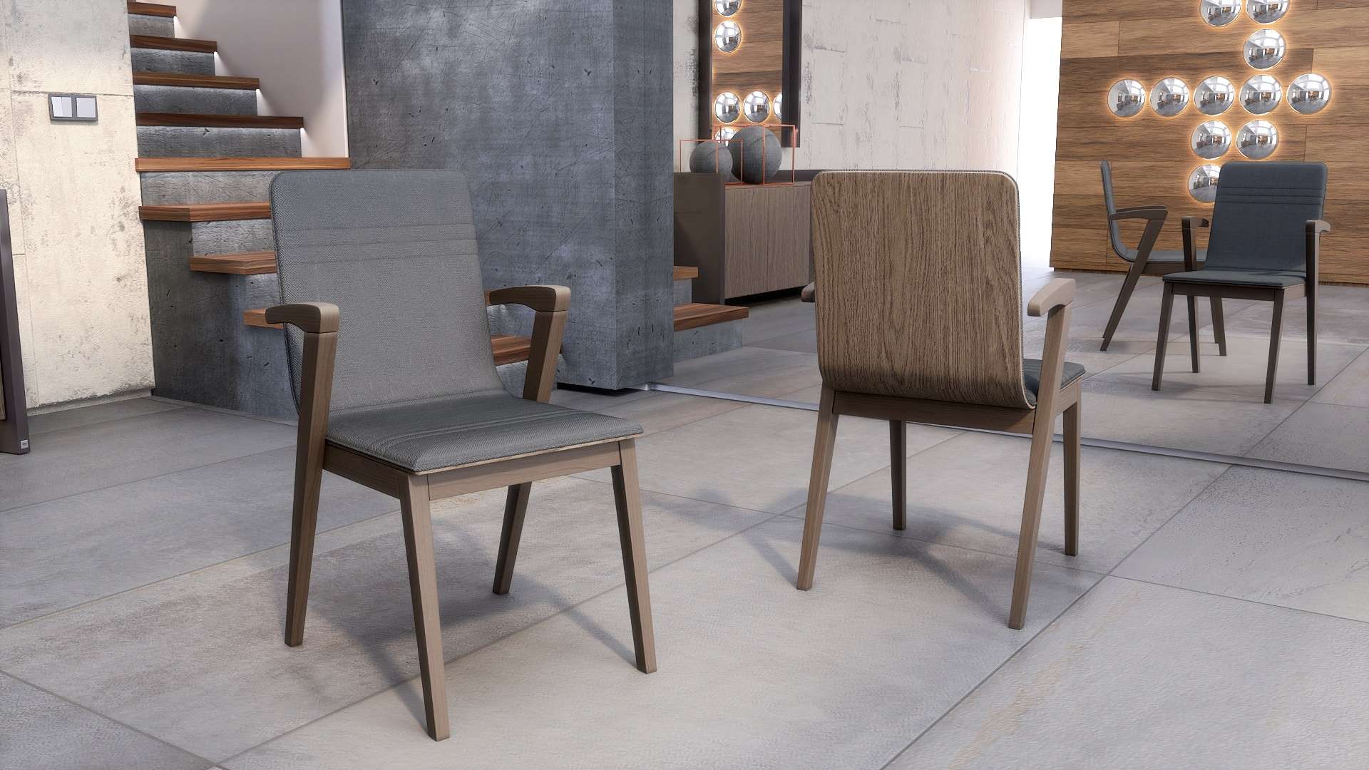 Κοφτές γραμμές στα μπράτσα και στα πόδια της καρέκλας και elegant καμπύλη στην ξύλινη πλάτη σε μια πρωτότυπη και αναπαυτική καρέκλα με ιδιαίτερο design. Την κατασκευάζουμε σε ξύλο, χρώμα και ύφασμα επιλογής σας.