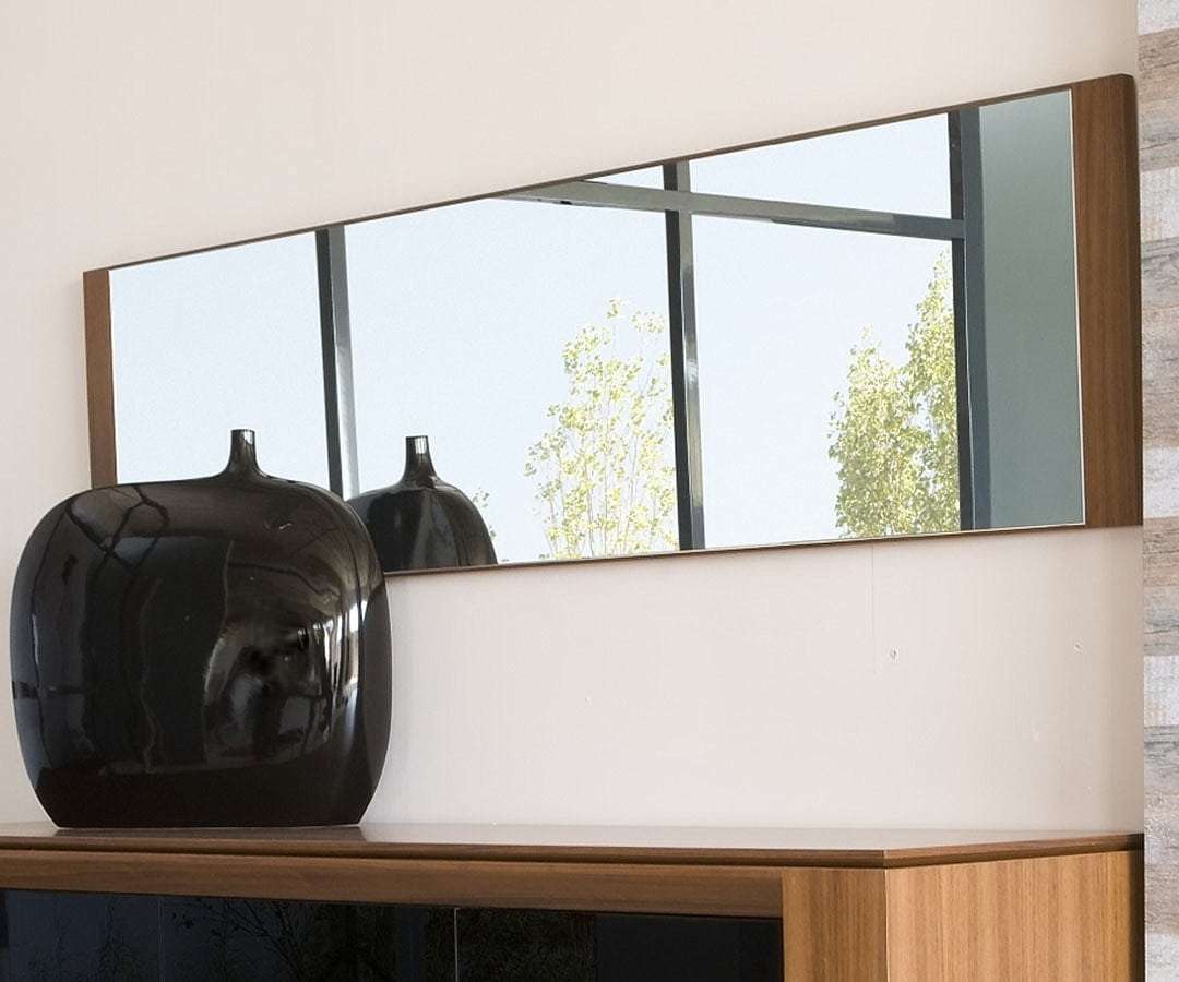 Παραλληλόγραμμος καθρέπτης σε minimal σχέδιο με λεπτομέρειες ξύλου (επιλογής σας) στο περίγραμμα.