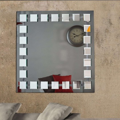 Καθρέφτης διακοσμητικός σε σχήμα τετράγωνο με ιδιαίτερες λεπτομέρειες στο περίγραμμα του.