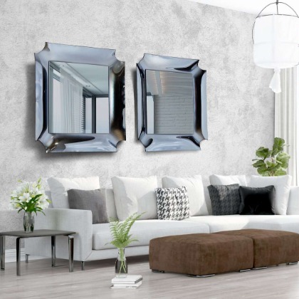 Καθρέφτης διακοσμητικός σε σχήμα τετραγώνου με ιδιαίτερες λεπτομέρειες στο περίγραμμα ψημένου γυαλιού σε μαύρο χρώμα. Με τον καθρέπτη F250 δημιουργείται την απόλυτη αίσθηση κομψότητας που αρμόζει στο χώρος σας.