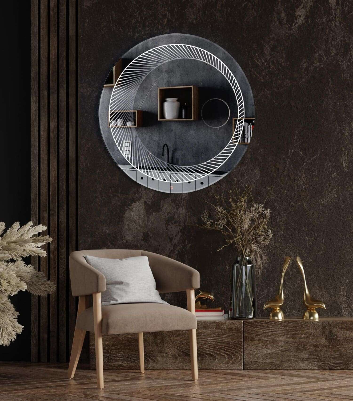 Καθρέφτης διακοσμητικός σε σχήμα στρογγυλό με φωτισμό led, που θα δώσει μια luxury πινελιά στον χώρο σας. Επιπλέον διαθέτει μπουτόν on-off
