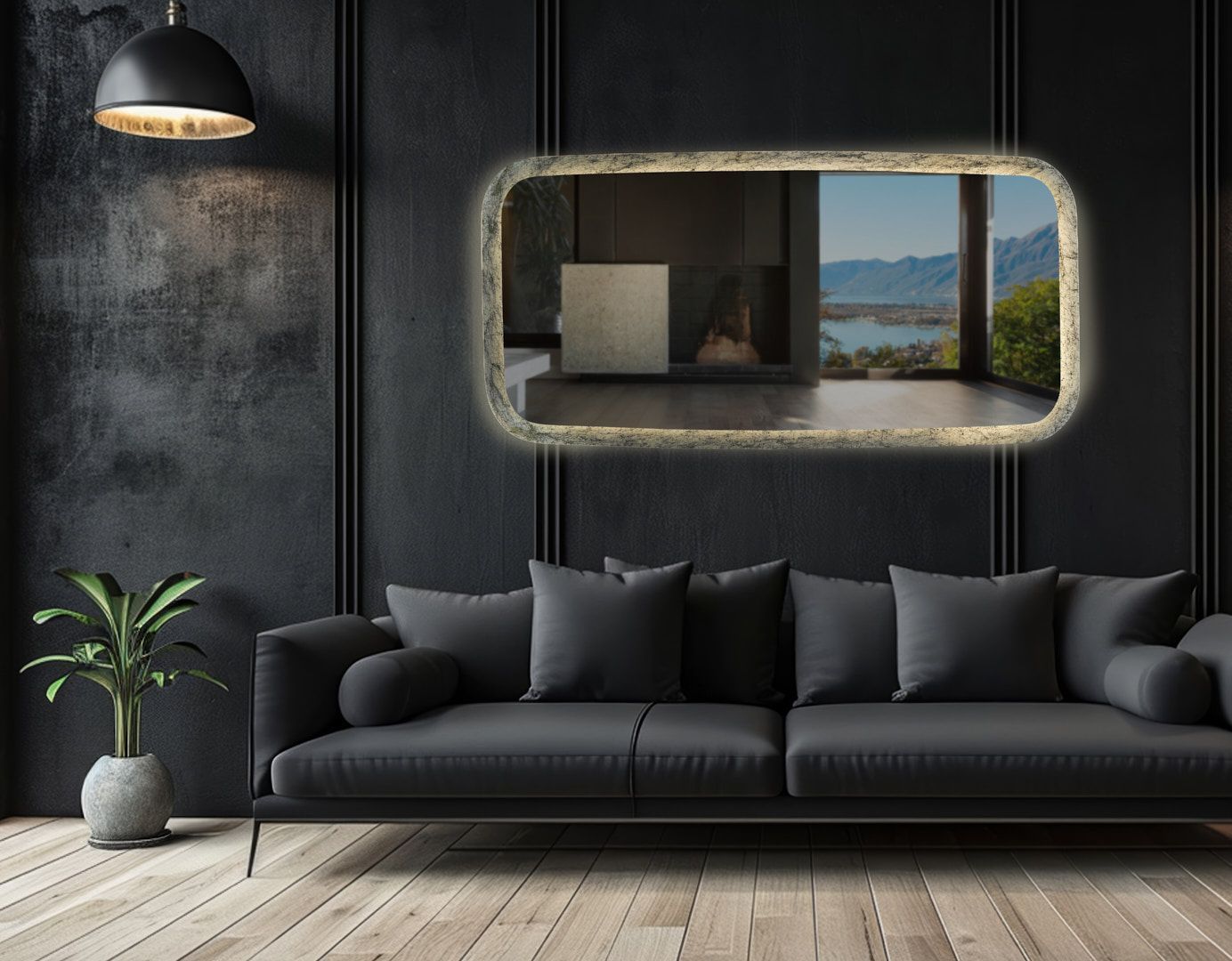 Καθρέφτης διακοσμητικός σε παραλληλόγραμο σχήμα. Με φιμέ κρύσταλλο, αμμοβολή στις άκρες και φωτισμό led, που θα δώσει μια luxury πινελιά στον χώρο σας.