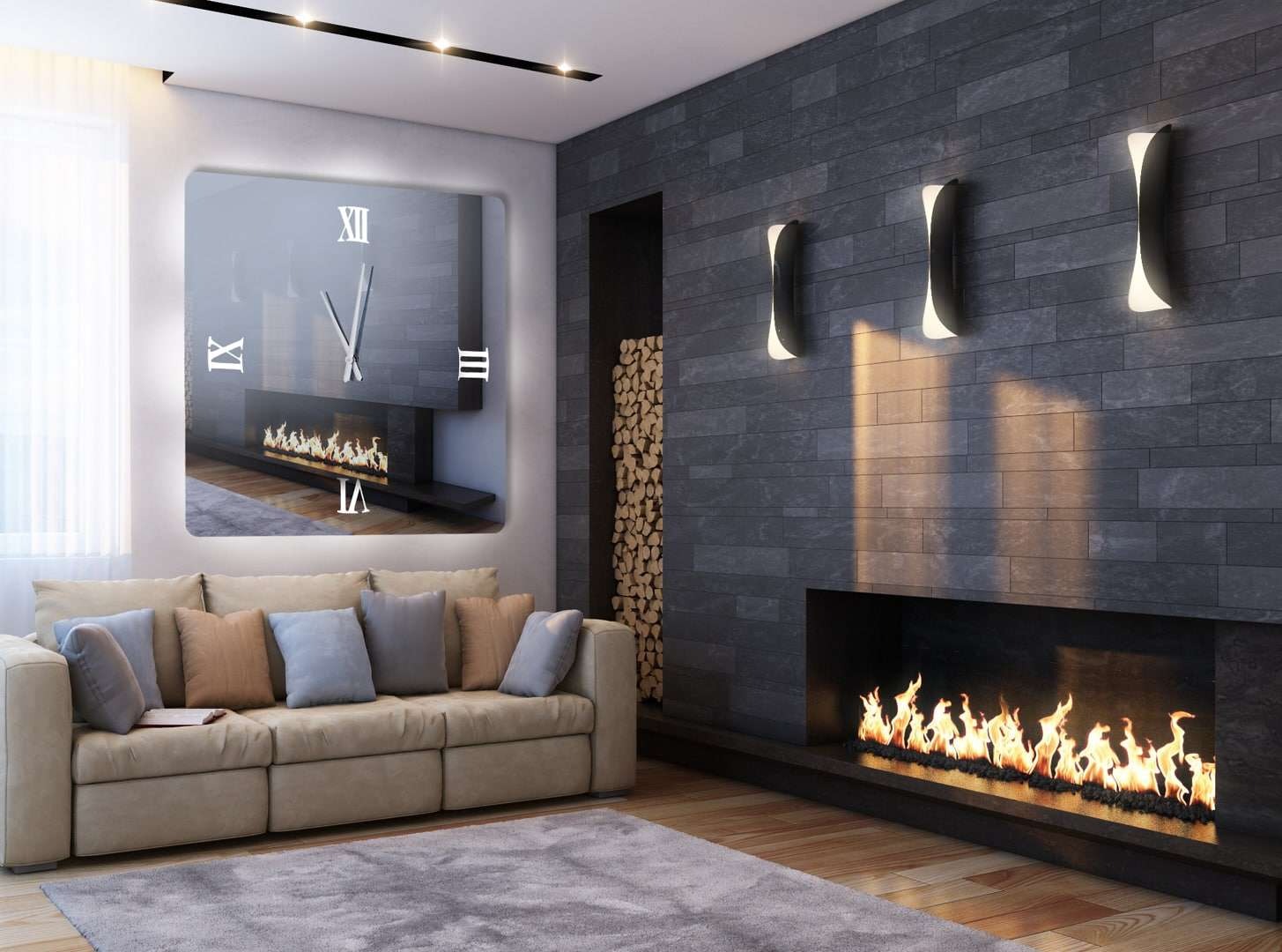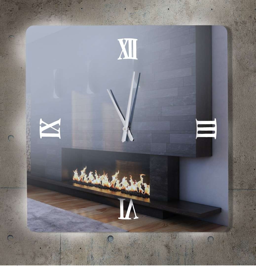 Καθρέφτης ρολόι με φωτισμό led, με αμμοβολή στα λατινικά νούμερα και καθρέφτη φιμέ. Όταν είναι κλειστός ο φωτισμός φαίνεται σας ένας απλός καθρέπτης.