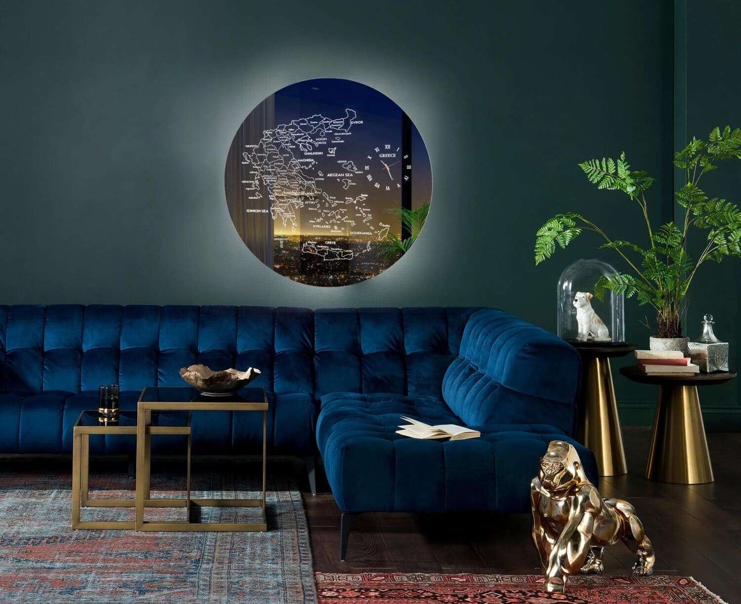 Καθρέφτης ρολόι με φωτισμό led, με μηχανισμό μπαταρίας. Υπέροχος σχεδιασμός που απεικονίζει το μεγαλύτερο μέρος του χάρτη της Ελλάδος.