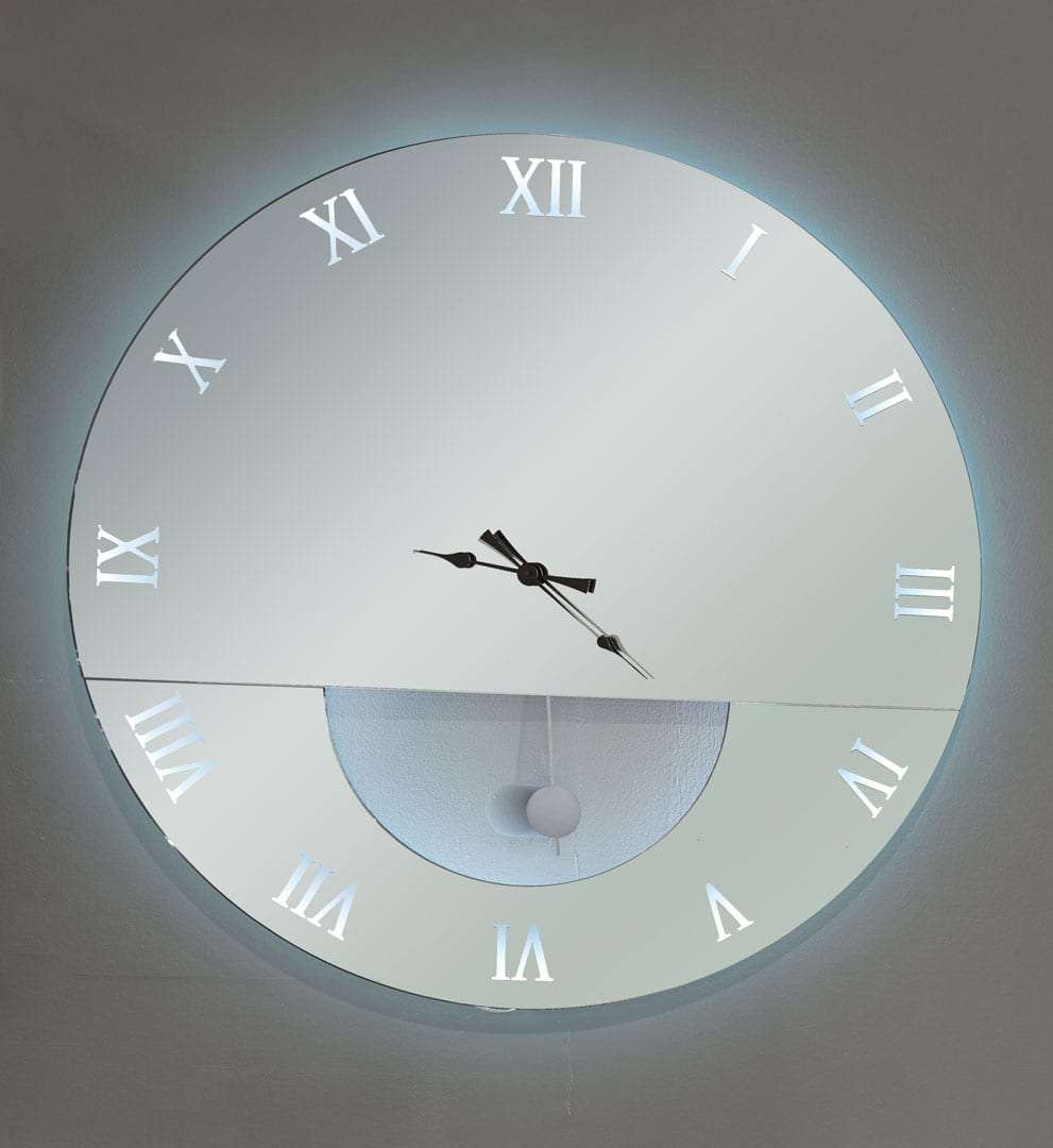 Καθρέφτης ρολόι με φωτισμό led, με αμμοβολή στα λατινικά νούμερα, χρώμα καθρέφτη φιμέ και έχτρα μηχανισμό εκκρεμές.