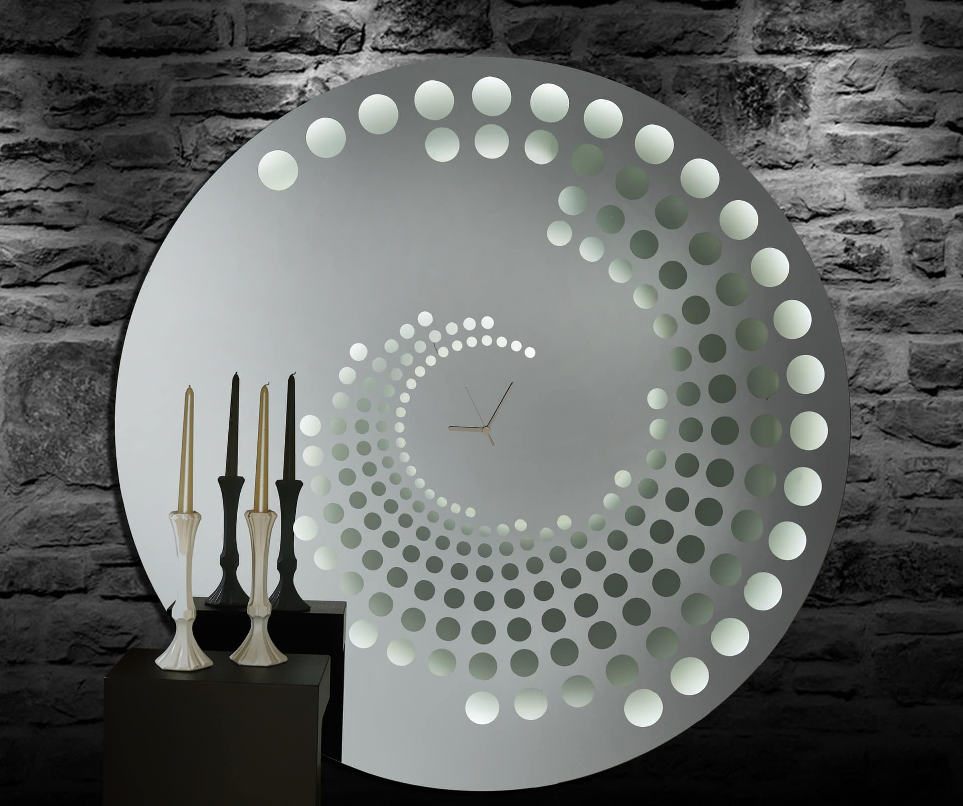 Καθρέφτης ρολόι με φωτισμό led, με αμμοβολή και  χρώμα καθρέφτη φυσικό.