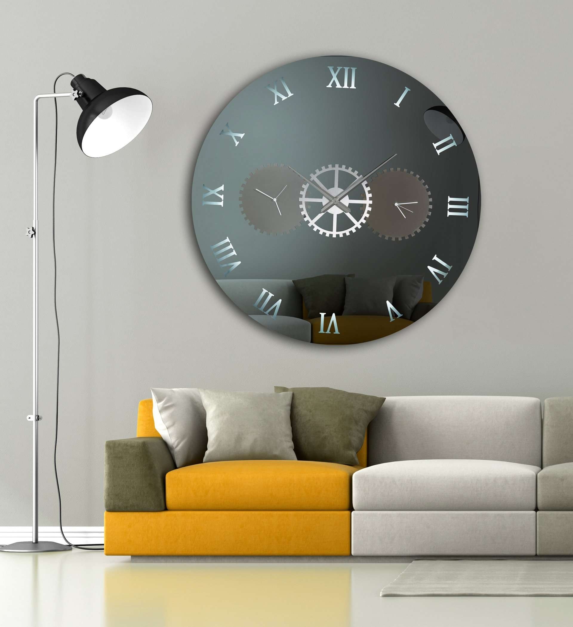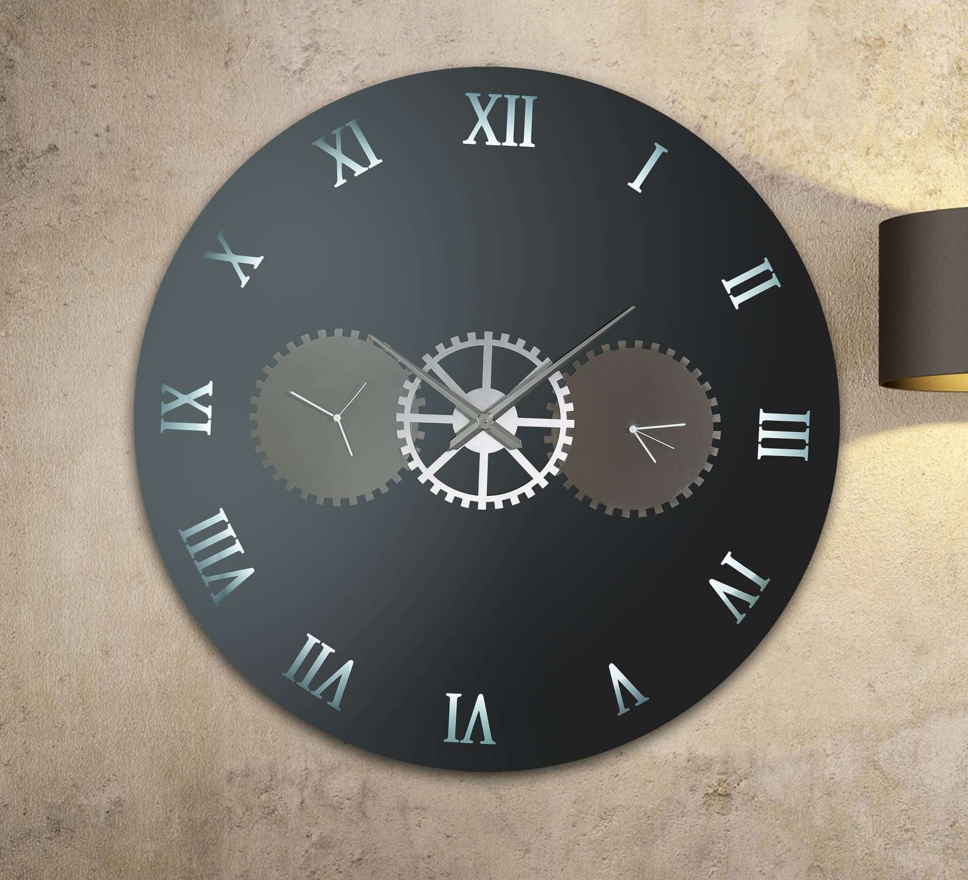 Καθρέφτης ρολόι με φωτισμό led, με τρείς μηχανισμούς και ανοξείδωτα διακοσμητικά γρανάζια.