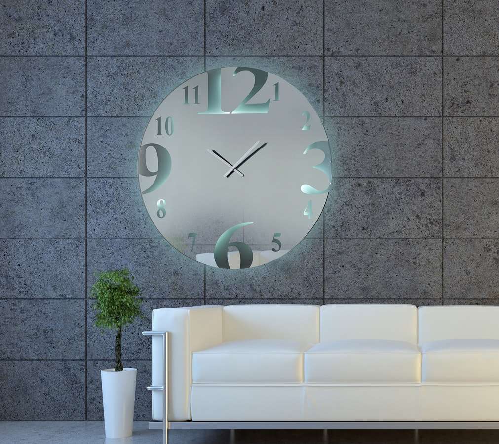 Καθρέφτης ρολόι με φωτισμό led, με αμμοβολή στα νούμερα και  χρώμα καθρέφτη φιμέ.