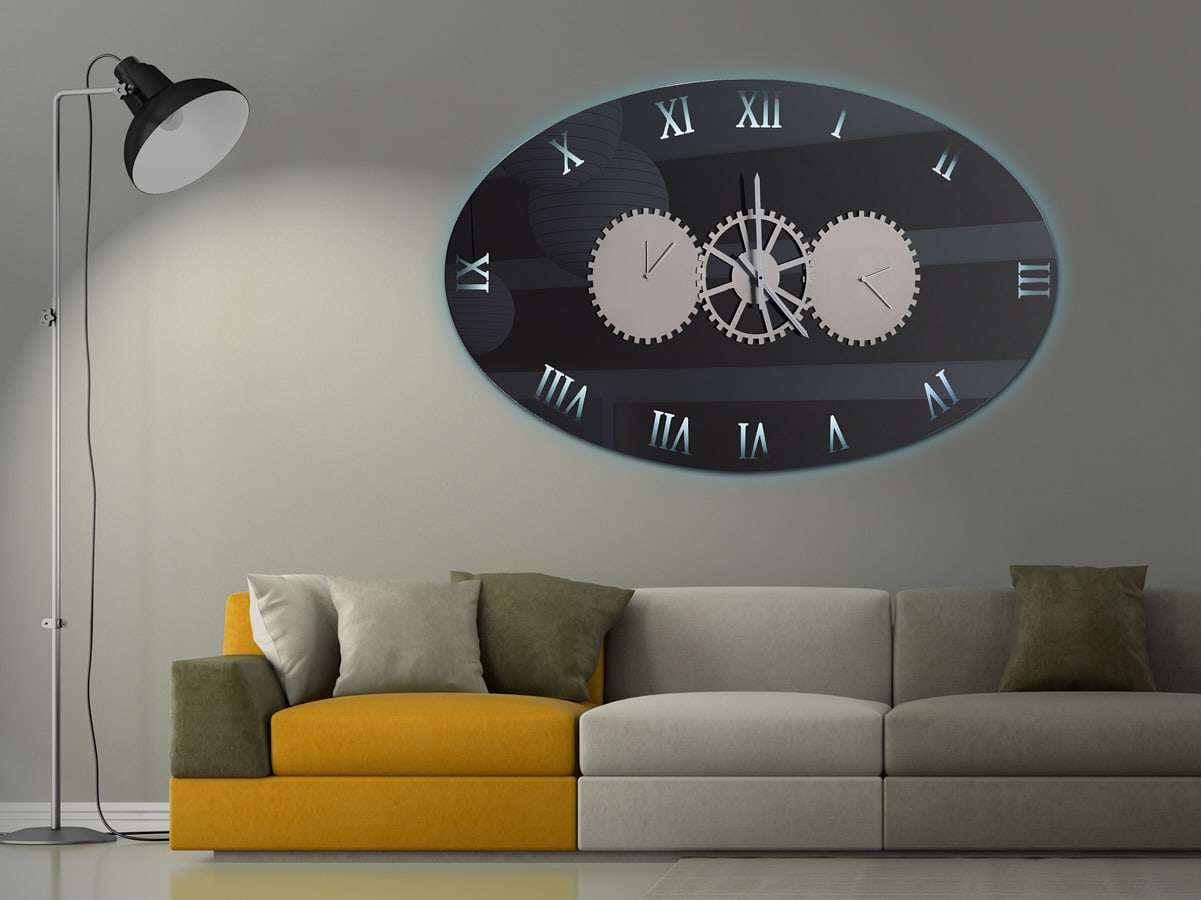 Καθρέφτης ρολόι με φωτισμό led, με τρείς μηχανισμούς και ανοξείδωτα διακοσμητικά γρανάζια.