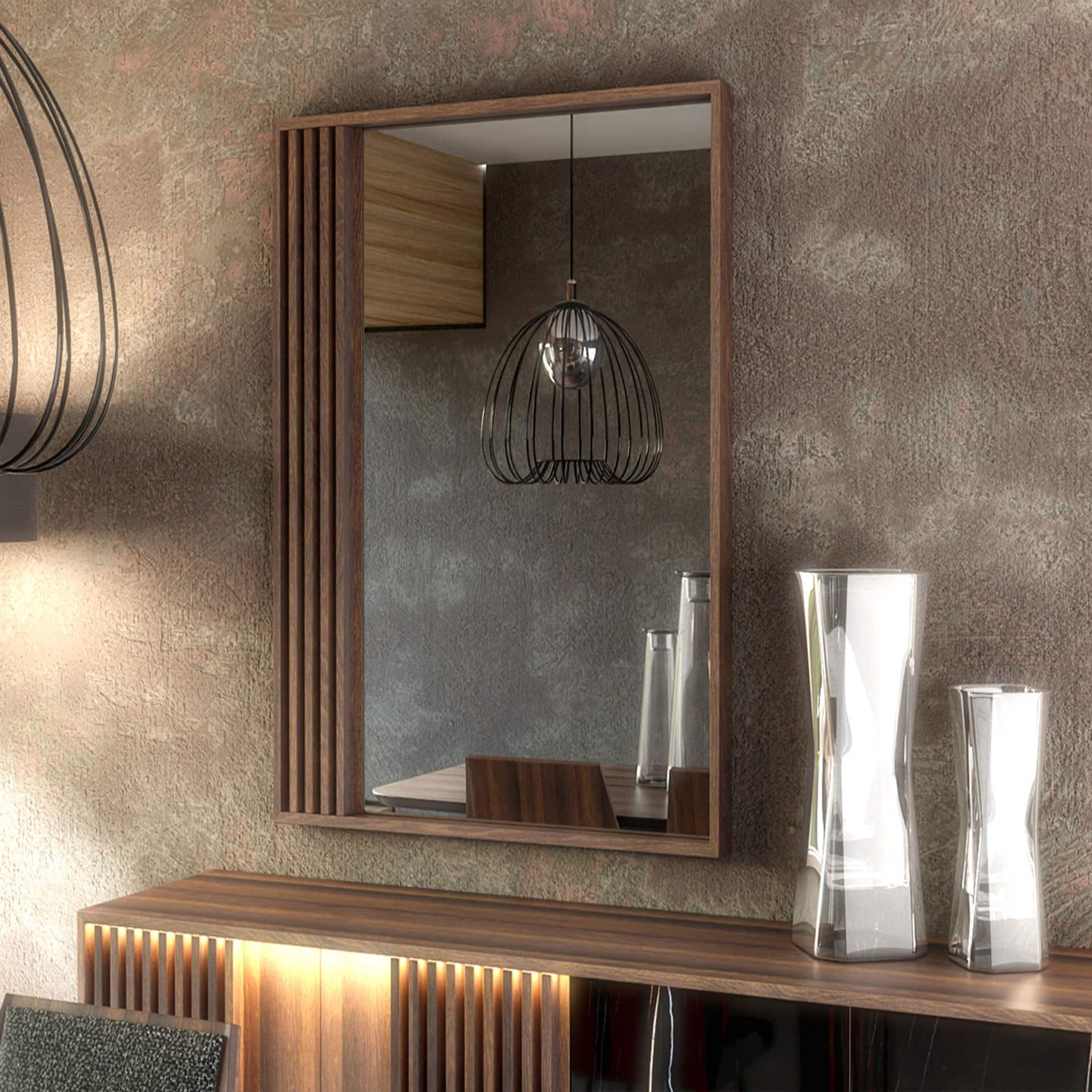 Όρθιος παραλληλόγραμμος, μοντέρνος καθρέπτης με επιβλητικό ξύλο ευκαλύπτου. Τον κατασκευάζουμε σε πολλές διαστάσεις και σε ξύλο και χρώματα που ταιριάζουν στο χώρο σας.