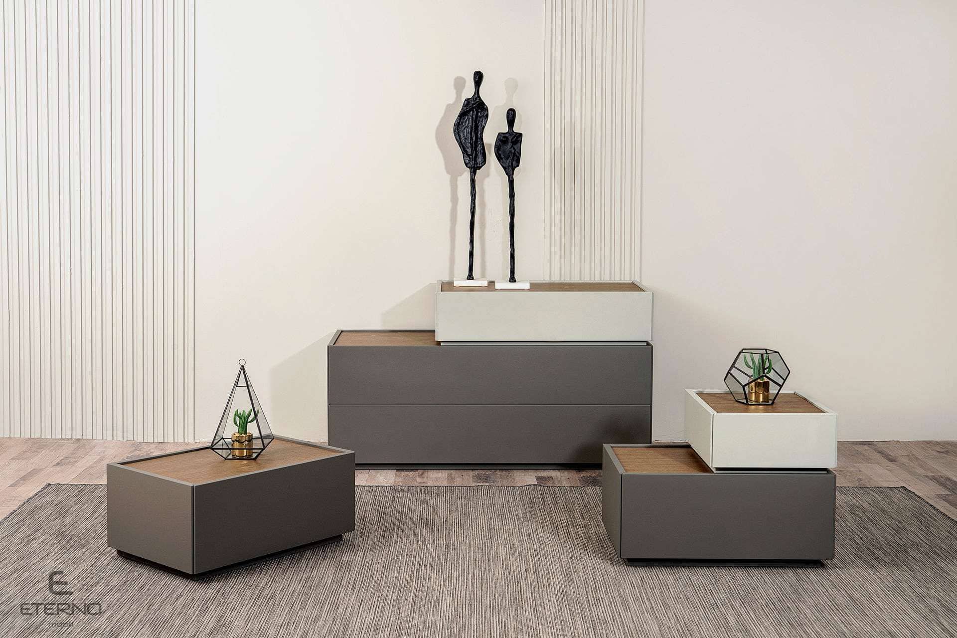 Το κομοδίνο Free διπλό συρτάρι ακολουθεί τους κανόνες που ορίζουν το σύγχρονο design και την αισθητική