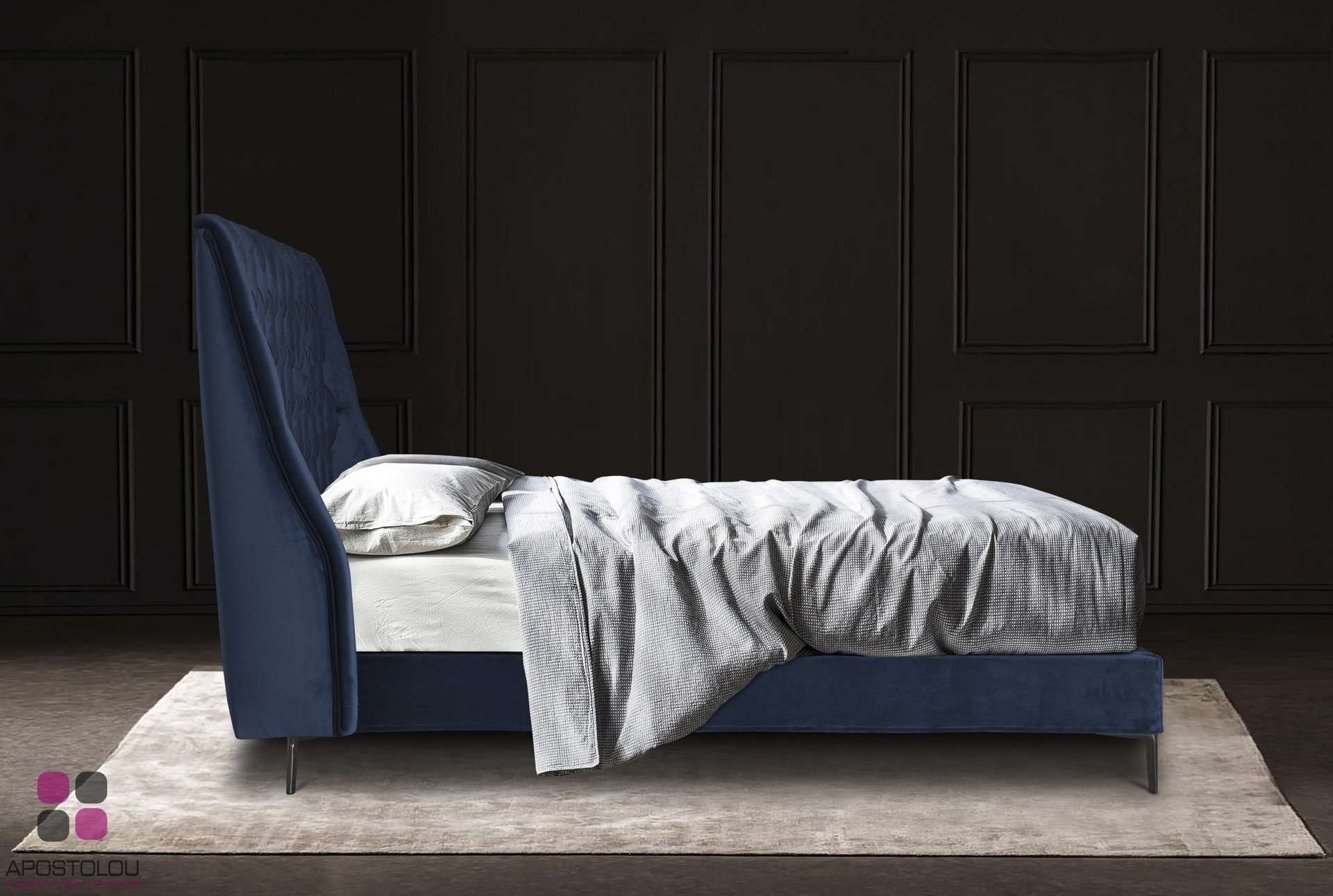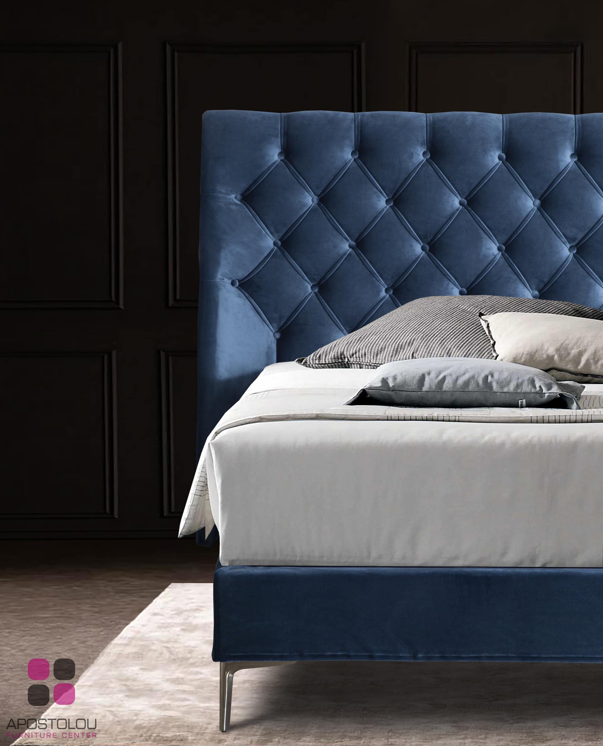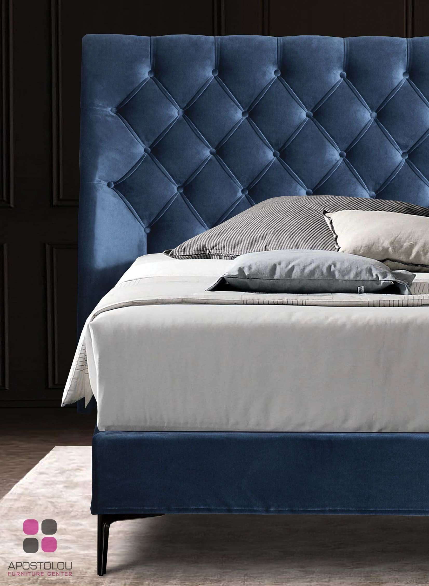 Ντυμένο κρεβάτι με μοντέρνο ύφος υψηλής αισθητικής με ψηλό και επιβλητικό κεφαλάρι του με χειροποίητο καπιτονέ ράψιμο. Παράγετε σε πολλές διαστάσεις και μεγάλη ποικιλία αδιάβροχων και easy-clean υφασμάτων.